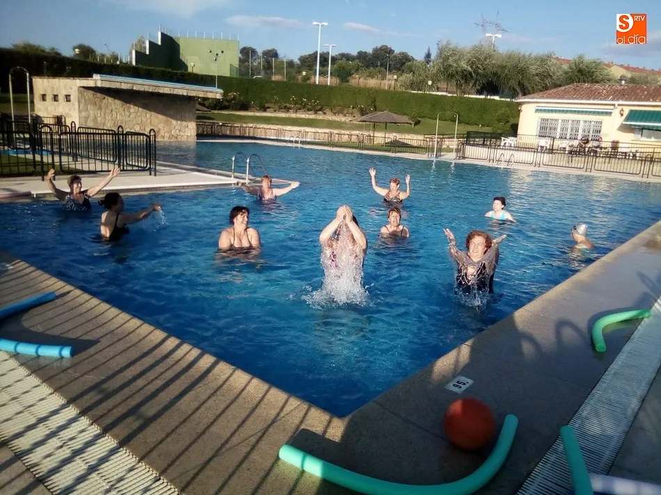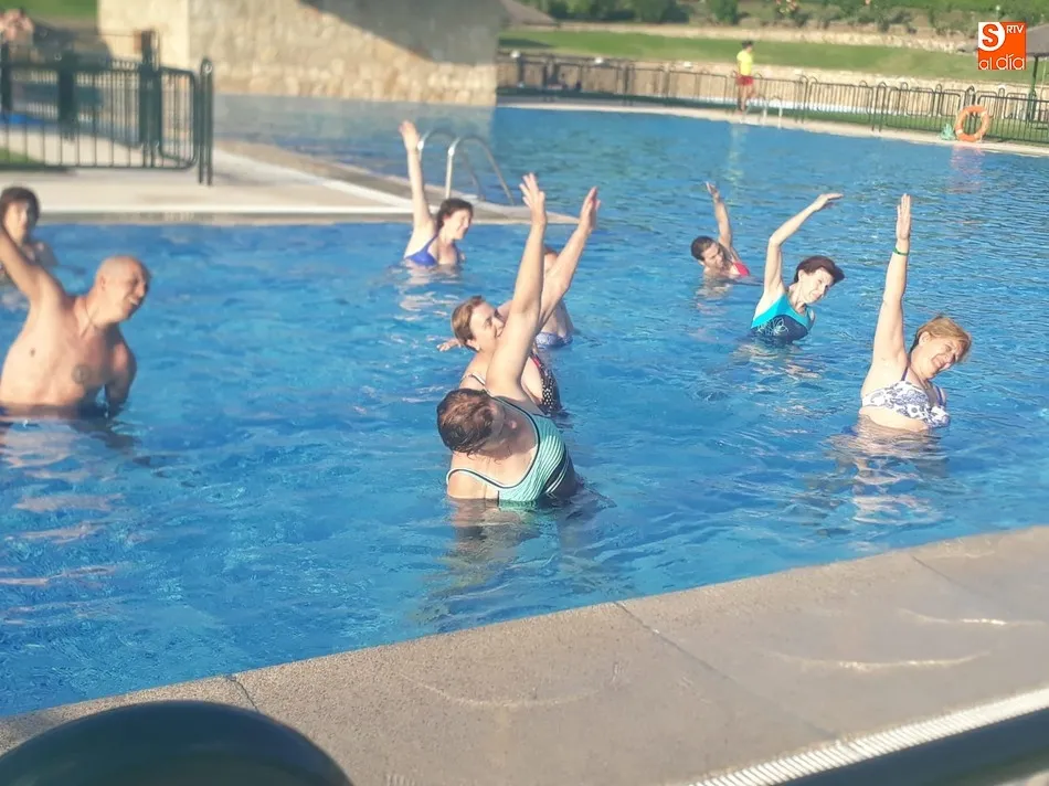 Por su parte, los mayores, para mantener la forma, no desaprovechan las excelentes instalaciones de las piscinas municipales para realizar ejercicios de aguagym.