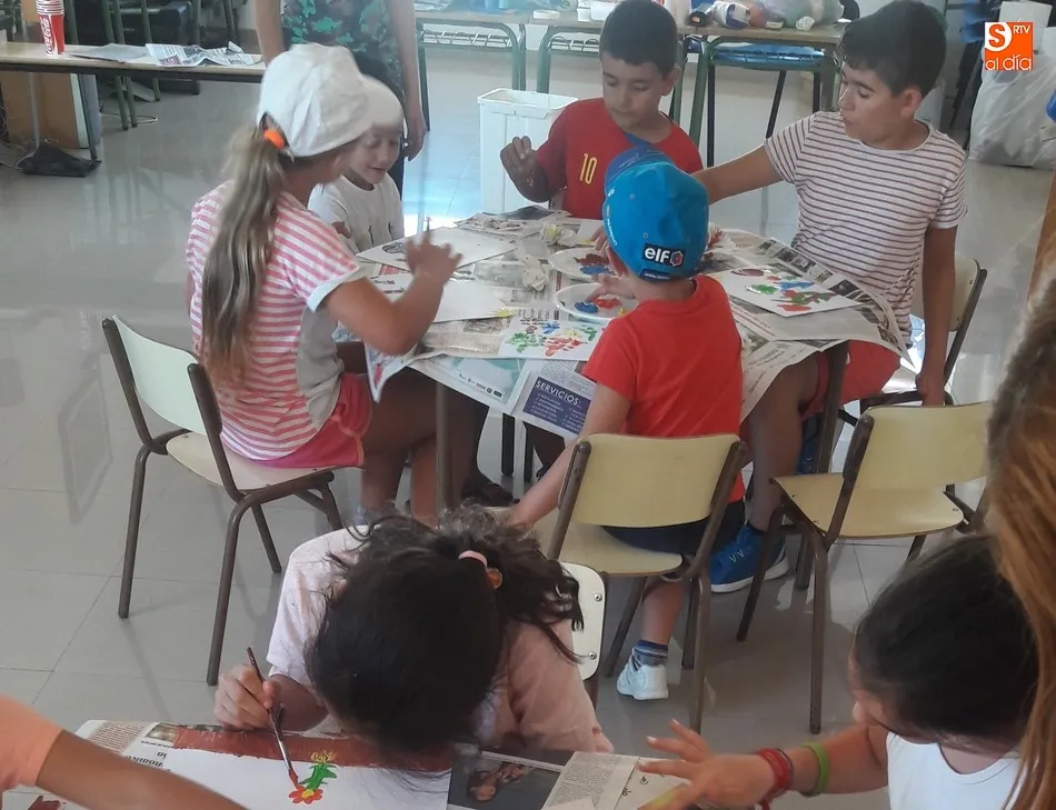 Ninos y niñas participan en talleres mientras los mayores tienen por las tardes un curso de ?aguagym? en las piscinas municipales