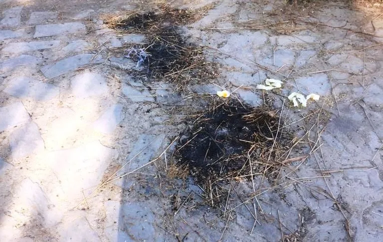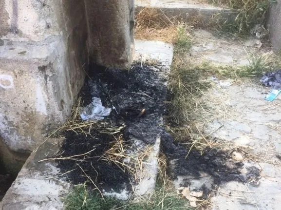 Presencia de restos de pequeñas hogueras junto a la fuente, muy próximas a terrenos completamente secos