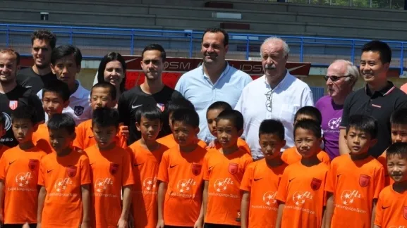 El alcalde, David Mingo, y la concejala de Deportes, Silvia González, junto a miembros de la junta directiva de la UD Santa Marta, recibieron al ex seleccionador nacional Vicente del Bosque con motivo de su visita al campus que estos días acoge el estadio San Casto para una expedición china, visita durante la que alabó las instalaciones del municipio, además del enclave natural de la Isla del Soto, señalándolo como ejemplo a seguir principalmente en aspectos deportivos.