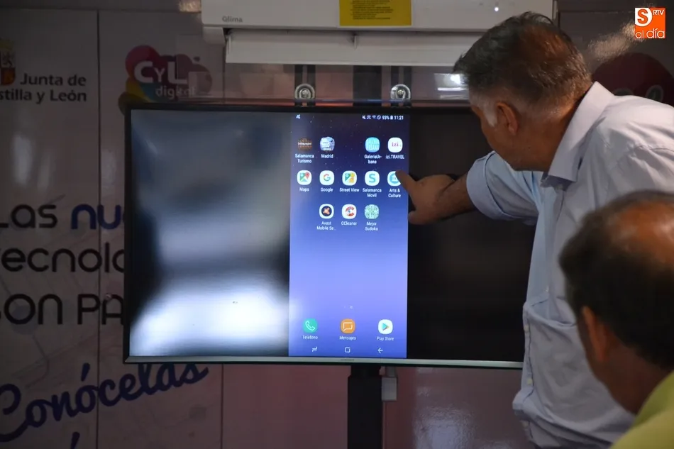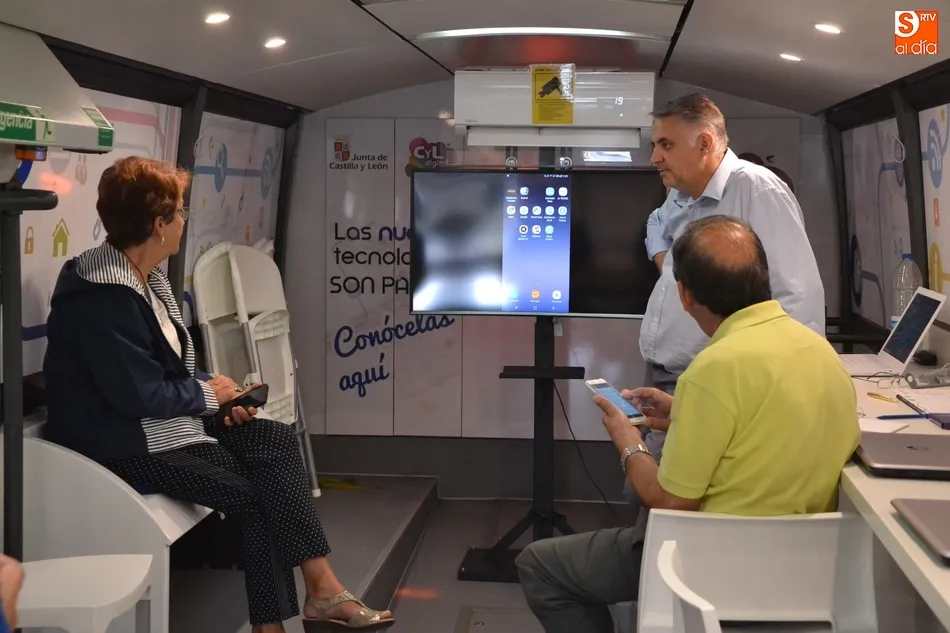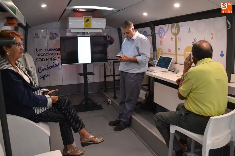 El Ciberbús CyL Digital hace parada en la ciudad con escasa respuesta   | Imagen 1Para ello, se ha transformado un autobús en un aula tecnológica itinerante, donde estaba previsto impartir en la mañana del jueves hasta tres talleres, que tuvieron escasa aceptación entre los mirobrigenses: sólo 6 personas asistieron al primero de ellos (denominado Funcionamiento básico de teléfonos móviles y aplicaciones interesantes) y apenas 2 al segundo (llamado Salamanca provincia cultural: descubre su cultura y patrimonio a través de su móvil).