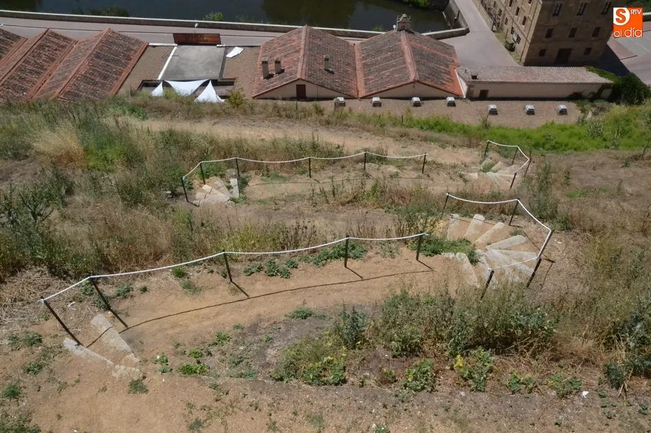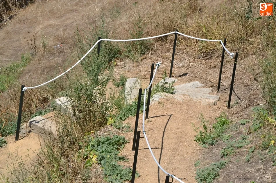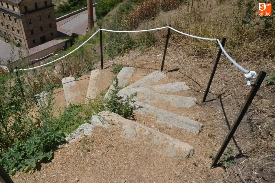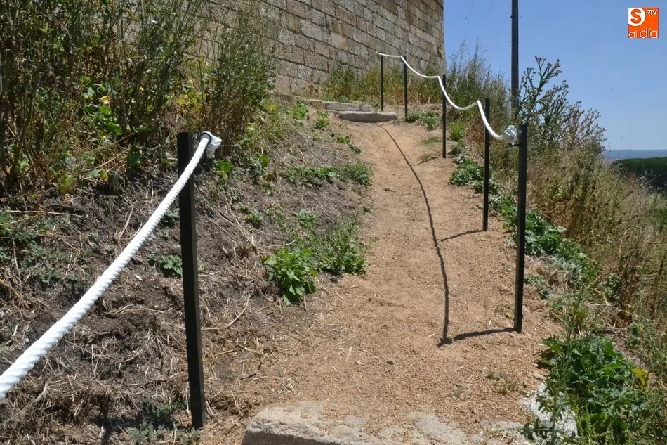 La emblemática Cuesta de las Emes de Ciudad Rodrigo que permite conectar a pie -y de forma más rápida- el inicio de la Cuesta de Santiago con la Avenida de La Concha -justo al lado de la Alameda Vieja- o viceversa, ha incorporado en los últimos días una gran novedad para facilitar el tránsito por la misma: un cordón de seguridad.