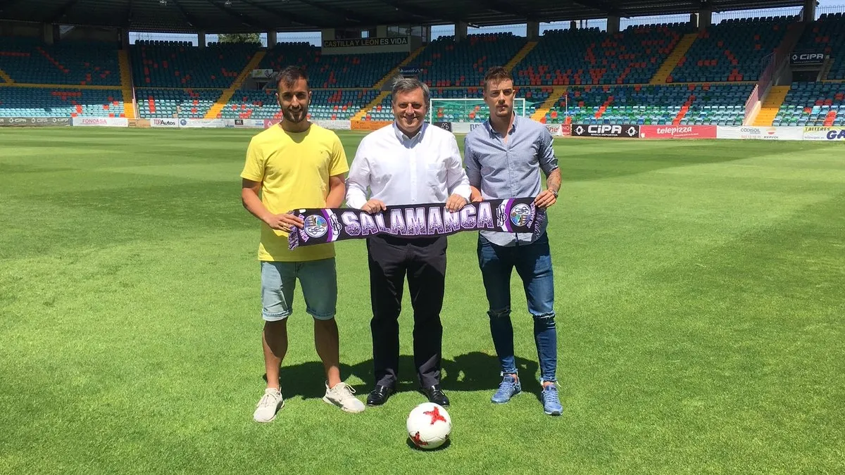 El CF Salmantino UDS ha presentado este jueves a sus dos últimos fichajes, los defensa Fran Morante, jugador de 26 años procedente del CD Badajoz, y Toño Vázquez, también central, de 32 años, que llega desde el CD Toledo. ?Dos defensas que nos van a aportar mucha experiencia, raza y valor?, avanzaba el presidente Carlos Martín.