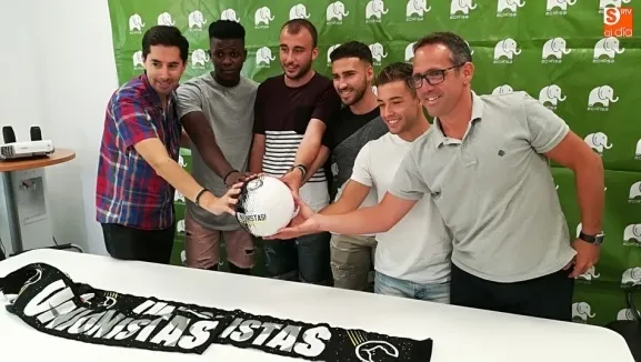 Si el jueves Unionistas presentaba cuatro caras nuevas, este viernes no se quedaba atrás y presentaba a los medios de comunicación a otros cuatro fichajes que llegan esperando coger experiencia y aportar, por tanto, juventud e ilusión al proyecto del club blanquinegro en Segunda División B. El guineano Admonio, Iván Robles, Adrián Llano y Unai Hernández se ponían de largo junto al vicepresidente, Javier Tejedor, y al Director de Fútbol, Gorka Etxberria, en la sede de Ecotisa. Ambos eludieron replicar las declaraciones del día anterior de Astu en las que el técnico salmantino señalaba al guipuzcoano como principal responsable de su despido.