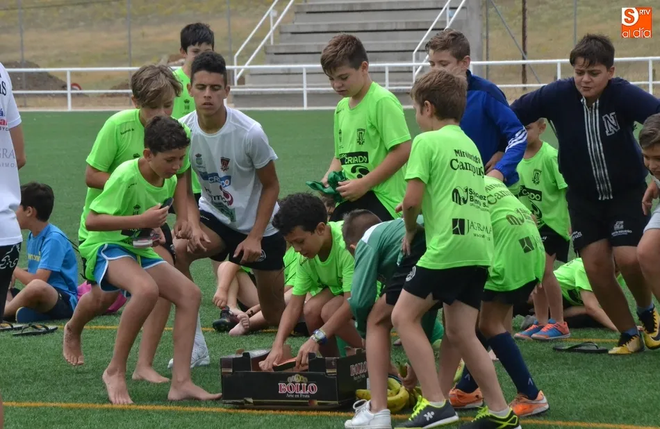 Una vez se dio por finalizada la fiesta, llegó la hora de recoger todos los materiales desplegados por el campo, incluidos los balones de fútbol de los que algunos chavales ?no querían desprenderse?. En ese momento, los chavales tuvieron la oportunidad de reponer fuerzas con sandía y plátanos, que fueron muy agradecidos.
