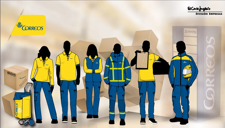 El Corte Inglés Empresas, especialista en vestuario profesional para empresas y organismos públicos, vestirá a los empleados de Correos durante los próximos cuatro años. El personal de reparto a pie y motorizado dispone ya de un nuevo uniforme de trabajo fabricado con tejidos técnicos, más cómodos y funcionales, adecuados para el buen desarrollo del trabajo. El departamento de I+D de El Corte Inglés Empresas, junto con un equipo multidisciplinar de Correos formado por las Subdirecciones de Promoción de la Salud, Red de Distribución, Marketing y Compras, han trabajado sobre los diseños y ergonomía de las prendas y en la propuesta de una variedad de tejidos muy técnicos, idóneos para la confección y adaptados a las necesidades del personal de reparto de Correos.