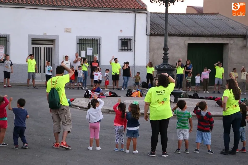 Intrépidos aventureros que buscan leones, trenes con revisores enfadados y animados bailes del ?chipi-chipi? protagonizan las canciones que entonan cada día, desde este lunes, los 112 niños y sus 27 monitores de la Escuela de Verano en el frontón de Babilafuente a las 19.30 horas. La iniciativa fomenta la convivencia entre los más pequeños durante dos semanas cargadas de imaginación y diversión.