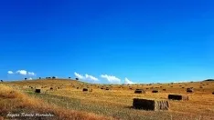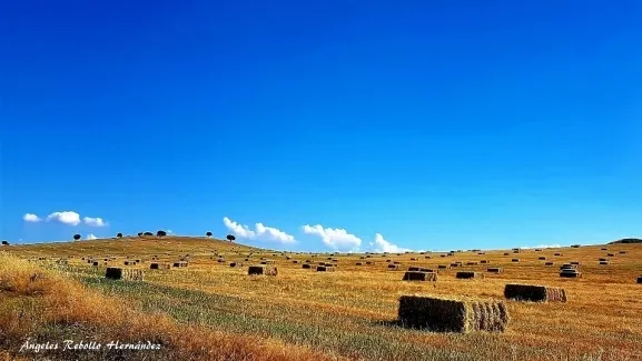 Esas pacas de las pajas, ya huérfanas de espigas, esa loma en que se hallan, ese ofrecimiento a los cielos, esa labor del hombre ya finalizada... todo nos está hablando de un trabajo bien hecho, gracias al cual los futuros panes se cocerán en los hornos... y todos comulgaremos con la bendición de la tierra.
