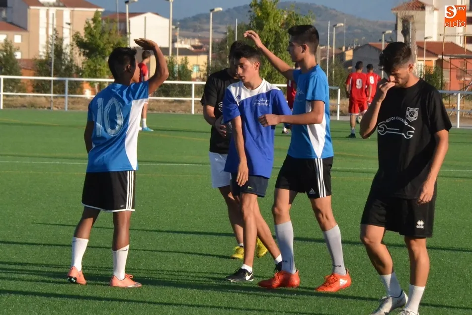 El Torneo de Verano de Fútbol 7 de Ciudad Rodrigo echó a andar en los Campos de Toñete en la tarde del jueves, un día poco habitual para el inicio de la competición (suele arrancar en lunes). A diferencia del año pasado, cuando el Torneo comenzó con una jornada muy desigual (tres goleadas), este año la mayor parte de la jornada inaugural fue muy emocionante, resolviéndose dos de los partidos por la mínima, y con emoción hasta el pitido final. Entre medias, eso sí, hubo una abultada goleada.