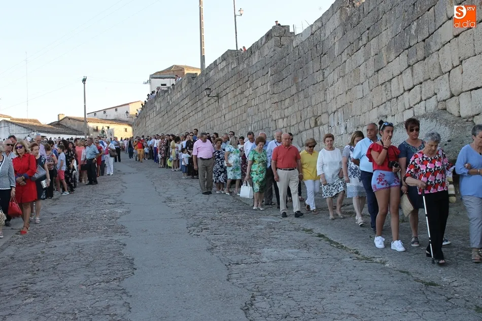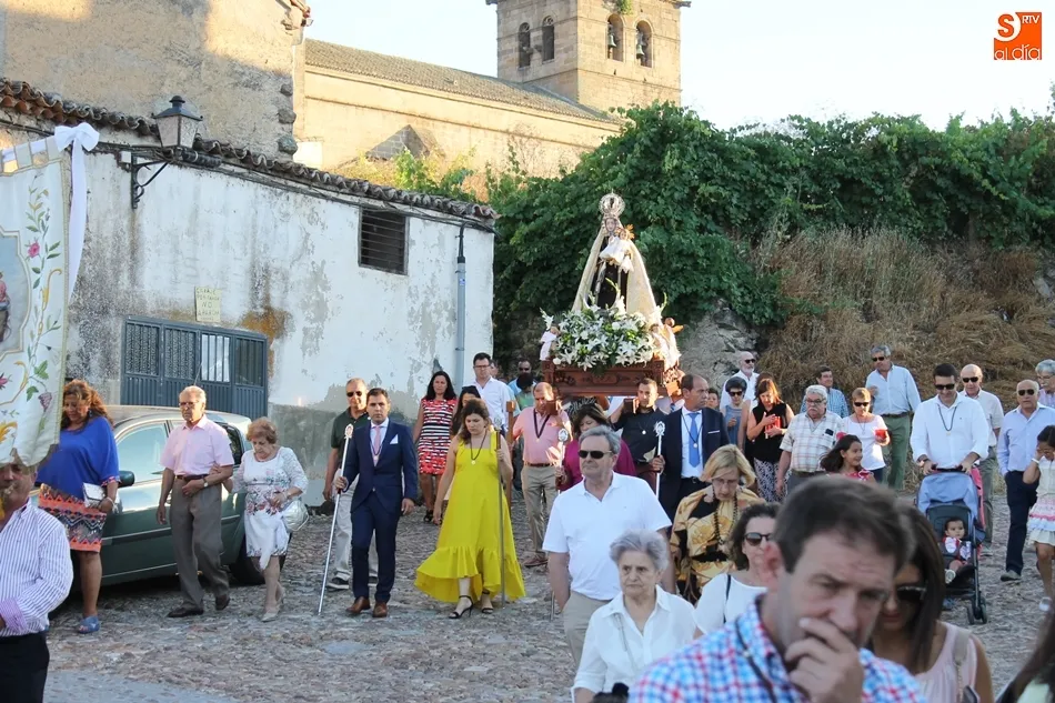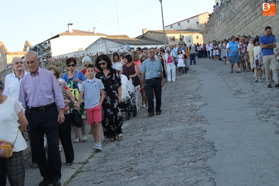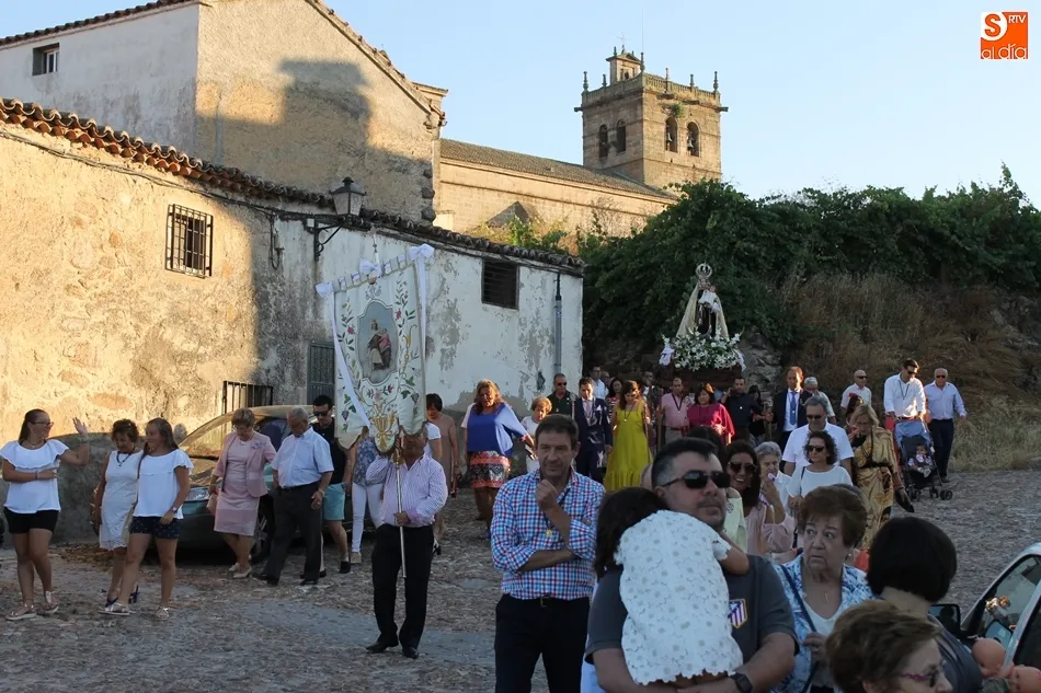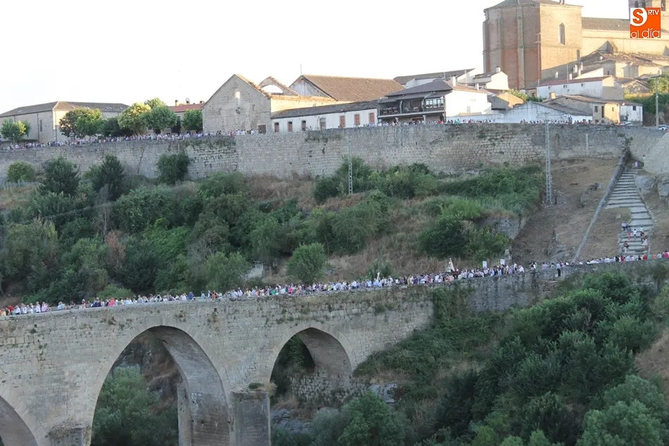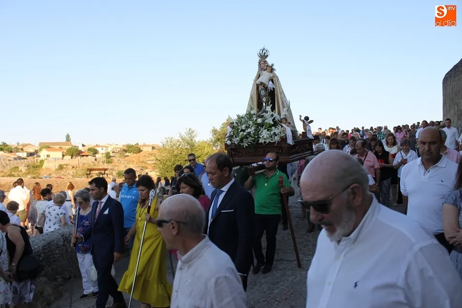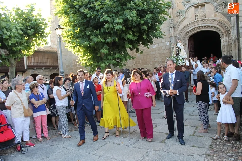 La tradicional procesión es un reflejo de la devoción por la patrona de Ledesma que, cada mes de julio y coincidiendo con la festividad del Día del Carmen, sale de su ermita y cruza el puente hasta la iglesia de Santa María La Mayor, donde permanece durante nueve días antes de volver a pasar el puente escoltada por los numerosos fieles. Un recorrido tan emotivo como bonito, con la muralla y los puentes sobre el río Tormes como escenario mientras la campana de la ermita anuncia su regreso. Al término de la procesión los mayordomos de este año hicieron entrega de las varas a sus sucesores.