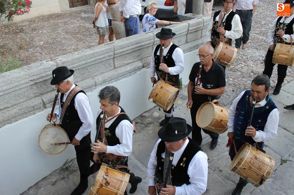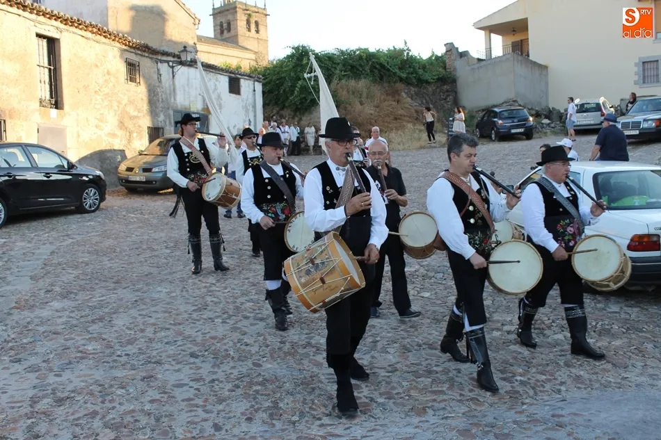 Incienso y sones de tamboril para acompañar la tradicional bajada de la imagen de la patrona de la villa desde la iglesia de Santa María La Mayor
