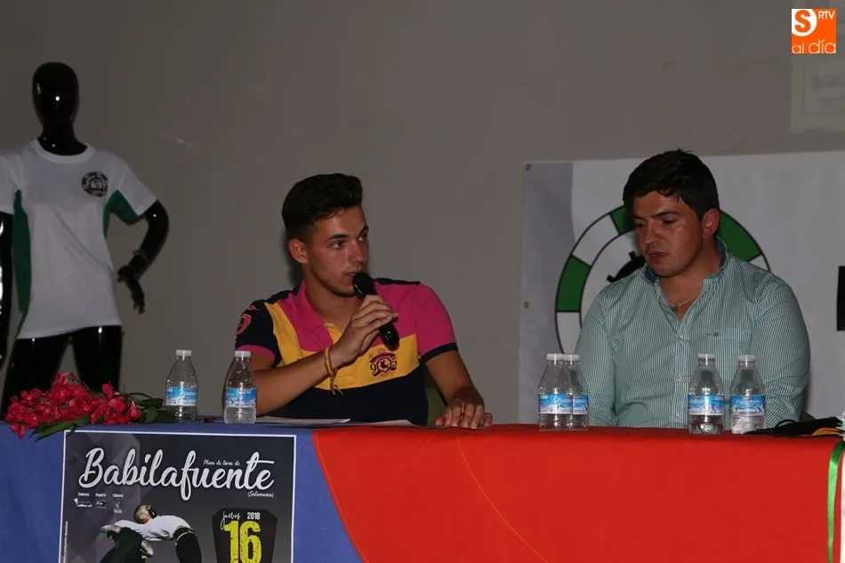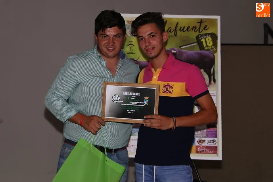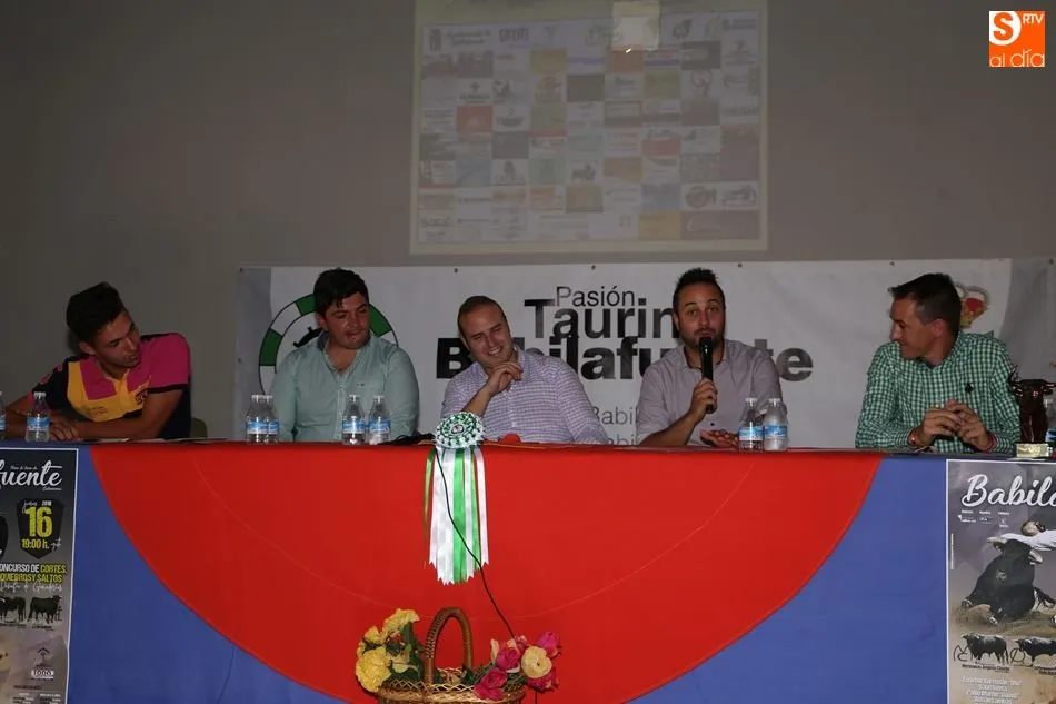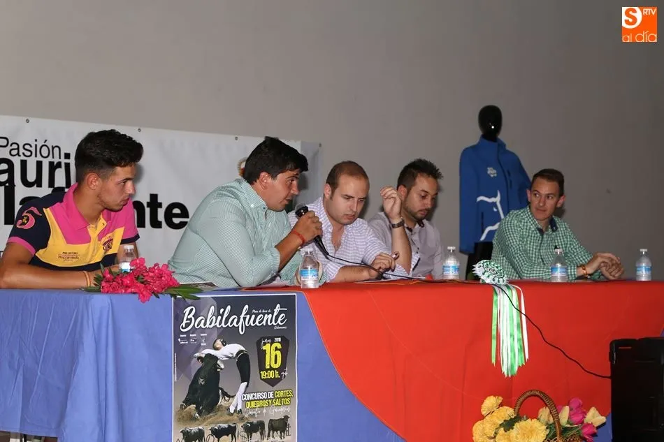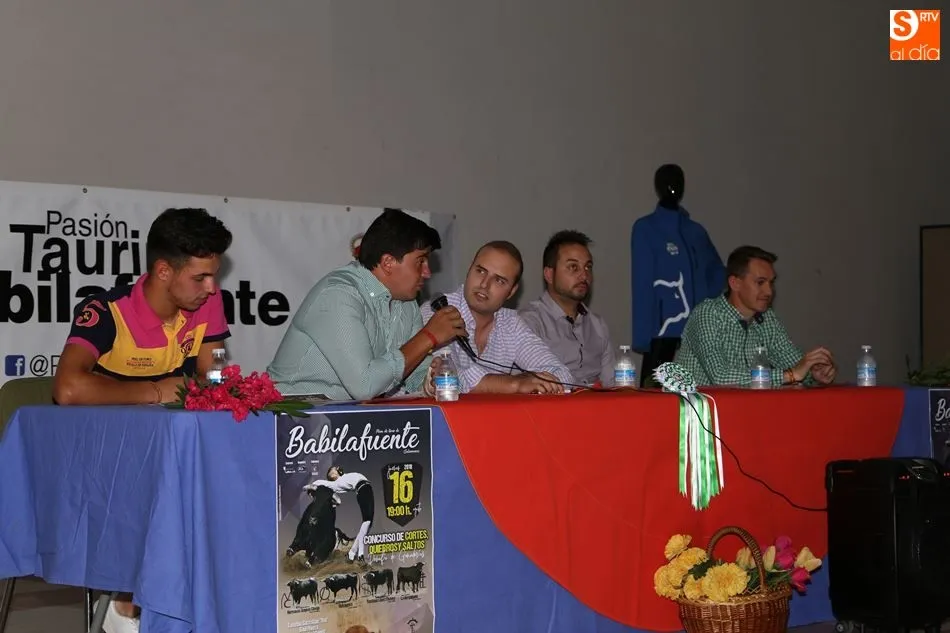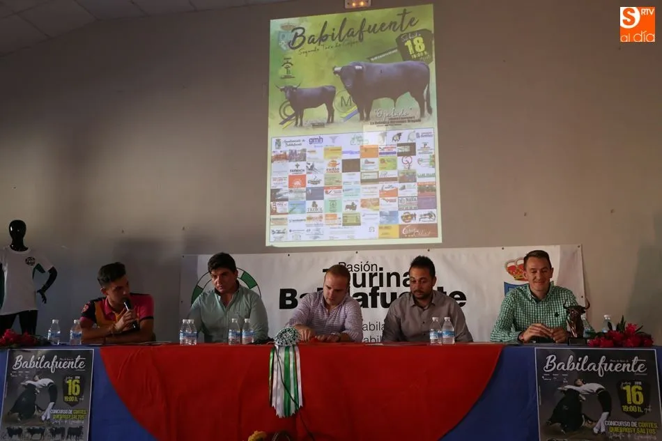 Ambos festejos han sido presentados este domingo en el multiusos de Babilafuente en un acto conducido por Rubén Gudino, de Juventud Taurina de Salamanca. Han intervenido el recortador David Sánchez; el empresario organizador del concurso de cortes, Chema Sánchez; el presidente de Pasión Taurina Babilafuente, Francisco José García; y el vicepresidente de la asociación babilafuentina, Daniel García.