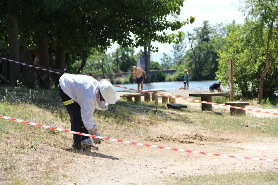 Concretamente, los Bomberos mirobrigenses tuvieron que intervenir para acabar con una colonia de avispas terreras que se había formado en uno de los extremos de la presa de La Pesquera, en el lugar donde se situaba la antigua caseta de El Picón.