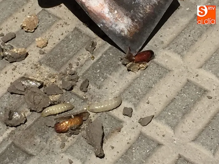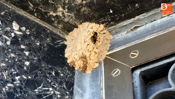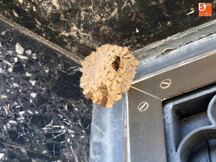 Eran efectivos del parque de la ciudad los que se desplazaban de inmediato hasta el lugar para proceder a retirar el pequeño nido, situado en una de las esquinas superiores de la puerta del portal y que, tras ser abierto, dejaba al descubierto diferentes larvas y crías de este insecto que algunos expertos han identificado como ejemplares de la ?avispa alfarera?.