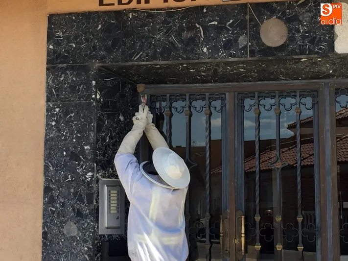 Lunes de intensa actividad para las avispas en la ciudad, con doble intervención de urgencia de los Bomberos de Peñaranda para retirar dos nidos de este insecto y asegurar las zonas.
