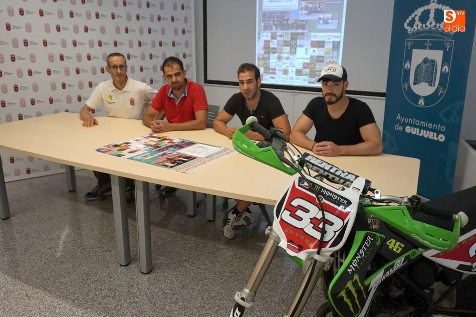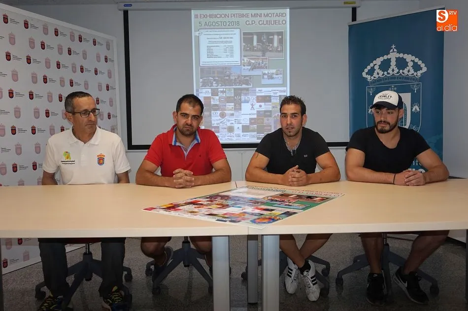 El Ayuntamiento de Guijuelo acogió esta mañana la presentación de la tercera edición de la Exhibición Pit Motard Mini Bike que volverá a convertir el centro de la villa en un circuito de velocidad el próximo domingo, 5 de agosto. En la presentación estuvieron presentes el concejal de Deportes, Carlos Arasa, el coordinador de Deportes, Melchor Herráez, y los organizadores Jonathan Martín y David Fernández. La cita motociclista llega cargada de novedades, con un nuevo trazado urbano, una prueba de aceleración abierta al público en general y la exhibición que ofrecerá el piloto portugués Carlos Oreiras 'Cajo'.