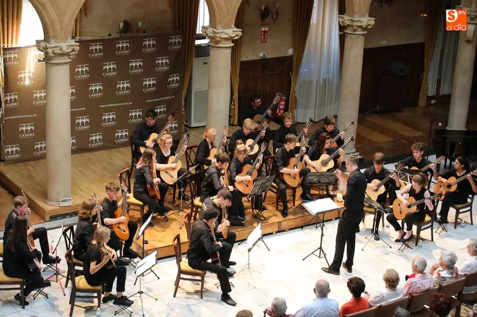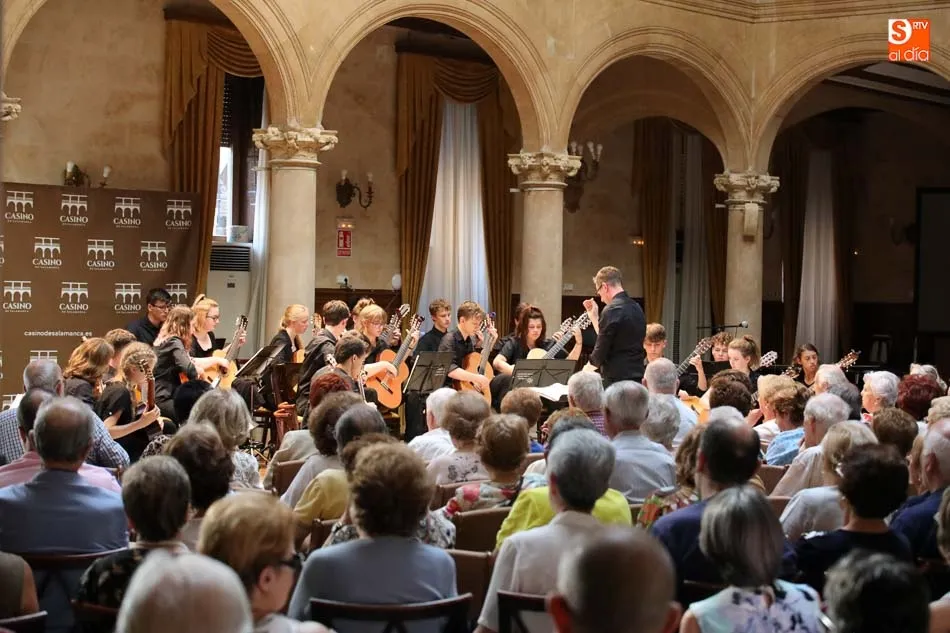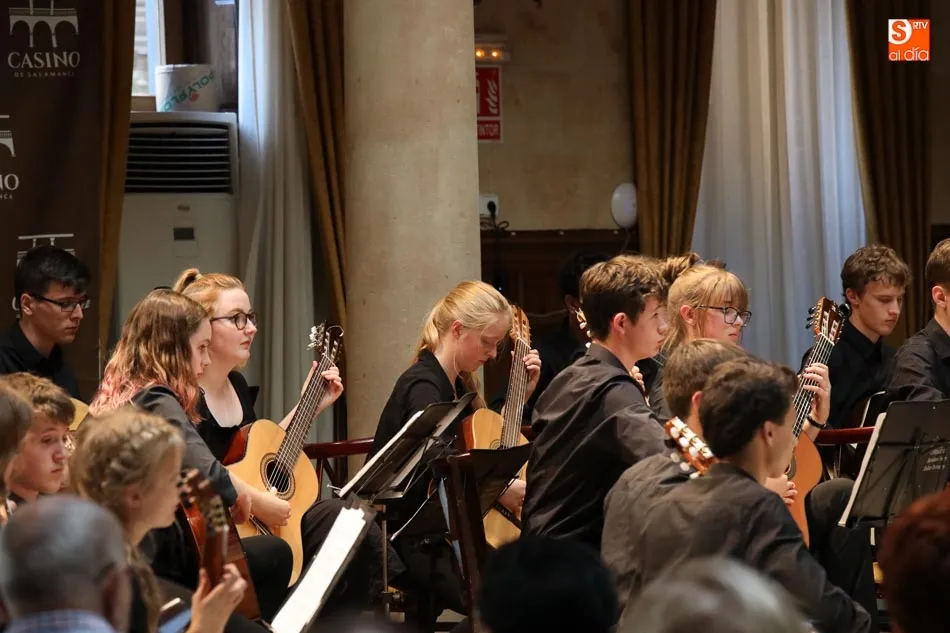 El Casino de Salamanca se ha llenado de música con las agrupaciones inglesas Berkshire Youth Choir, dirigida por Christopher Hann, y Berkshire Youth Guitar Orchestra cuyo director es Steve Christmas, con el primero de los conciertos que ofrecerán dentro de su gira en la ciudad de Salamanca. Acompañados por el prestigioso pianista Andrew McKenna, el público asistente ha podido disfrutar de una sobresaliente velada musical.
