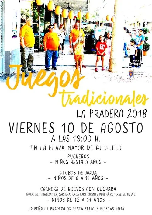 Los juegos tradicionales de La Pradera que se celebrarán el viernes 10 de agosto en la Plaza Mayor servirán de antesala para la fiesta que esta peña sigue mantenido desde hace años y que viene a recordar la que hace décadas celebraba este barrio de Guijuelo. Con más de 40 años a sus espaldas, esta agrupación es la organizadora de una actividad que año a año gana más adeptos. Romper pucheros de barro, guerra de globos y carreras de huevos con cuchara son en esta ocasión las pruebas elegidas para que, a partir de las 19,00 horas, los más pequeños de la casa (hasta 14 años) pasen el rato y no olviden los juegos de antaño.