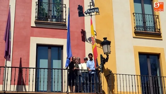 del gran festejo taurino de las Ferias y Fiestas como es la corrida de toros, que se ha colocado en uno de los balcones de la casa consistorial, mientras los cohetes anunciaban a vecinos y visitantes de la celebración de este momento que abre de manera real la cuenta atrás para la celebración de la semana grande peñarandina.