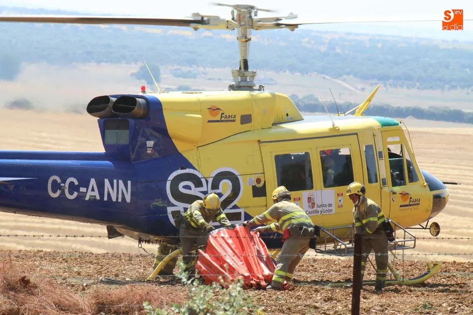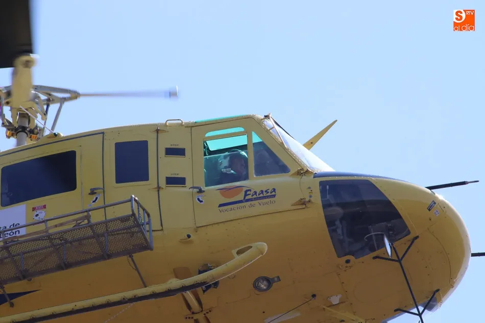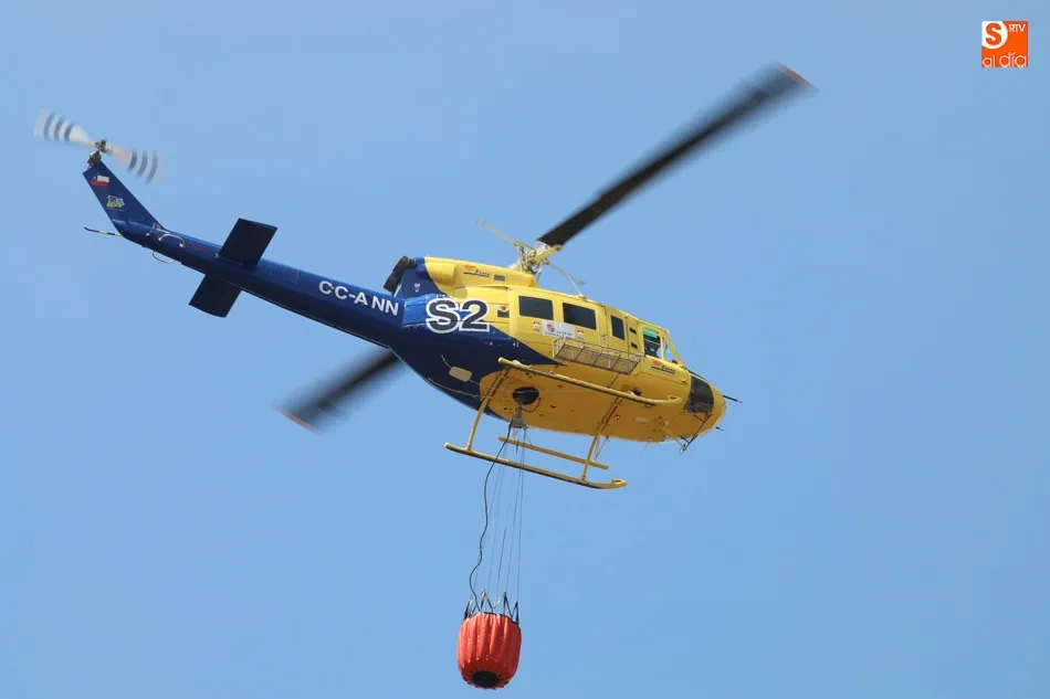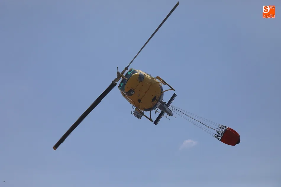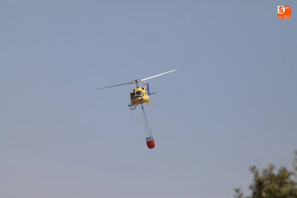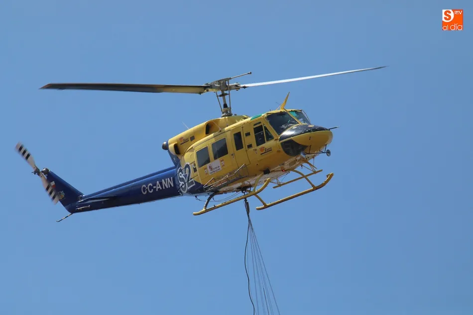 Bomberos de la Diputación, operarios en tierra y un helicóptero trabajan en el lugar