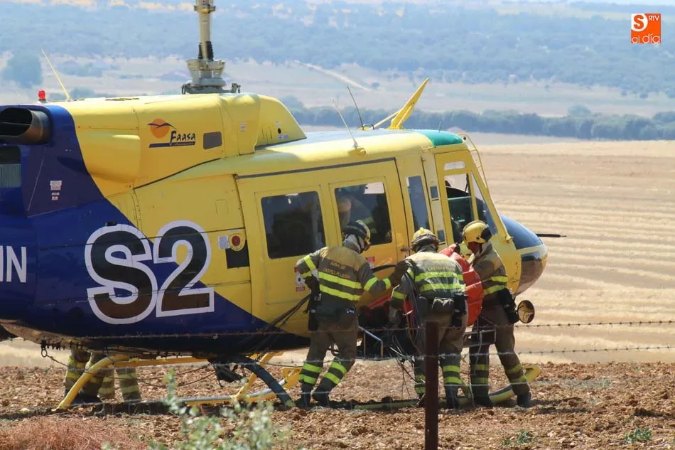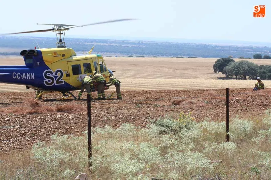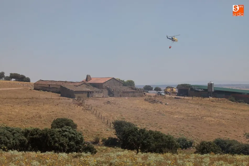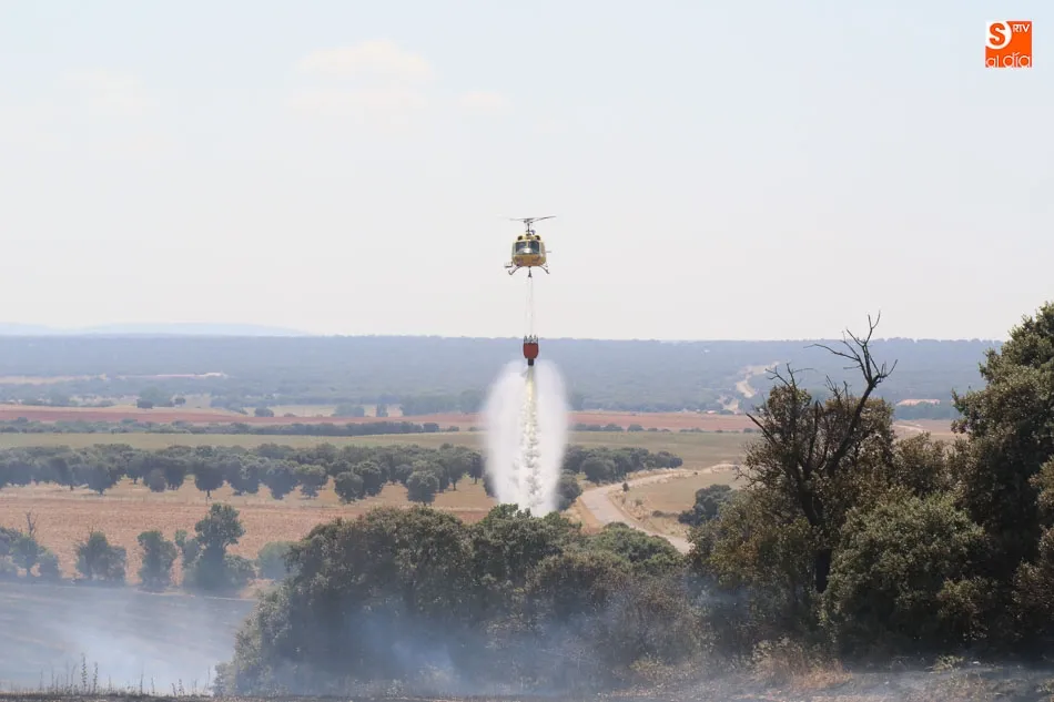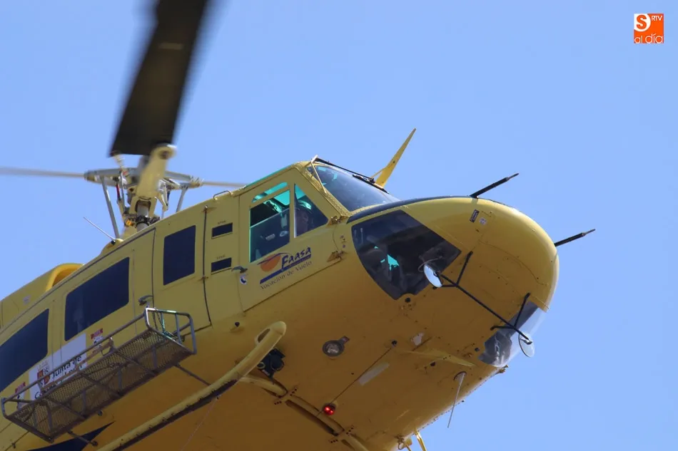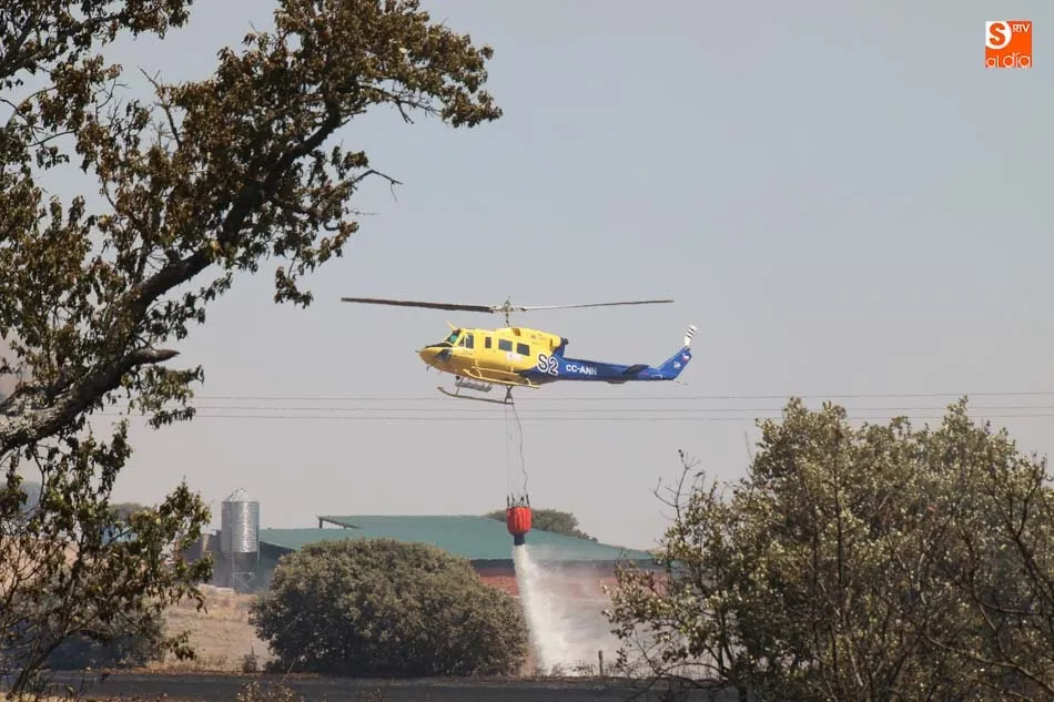 Bomberos de la Diputación, operarios en tierra y un helicóptero trabajan en el lugar
