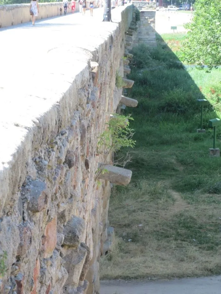 Entre esos monumentos citan el Puente Romano, el más antiguo de la ciudad y Bien de Interés Cultural, ?donde se pueden apreciar numerosos brotes de plantas en desagües laterales y tajamares. A ello se podría añadir que el propio entorno carece de cuidado ya que hasta hace dos días era un campo de cardos que crece cada año?.