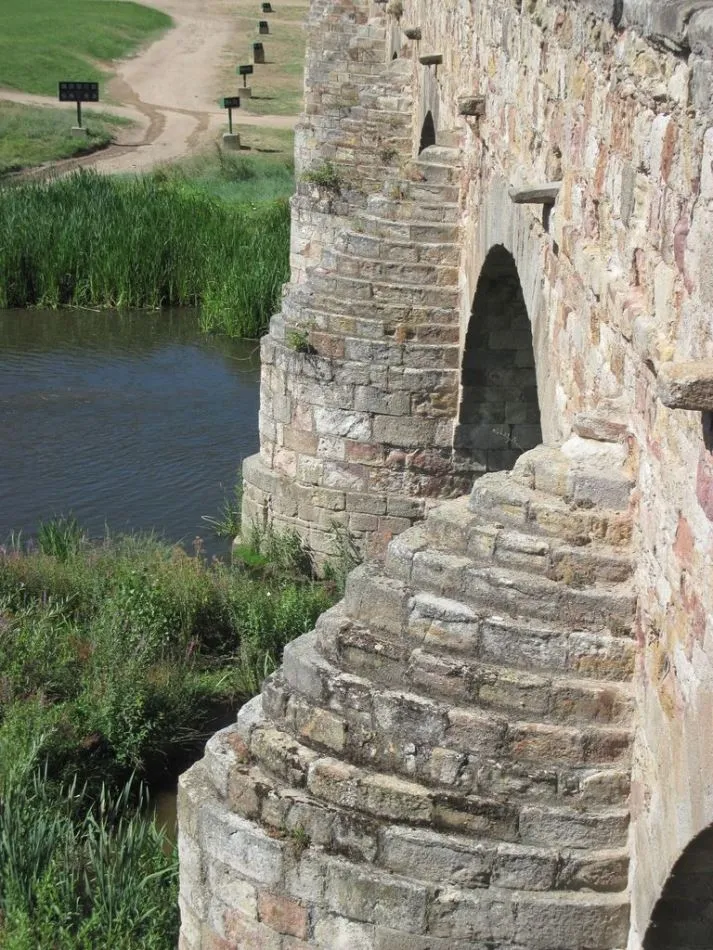 Uno de esos monumentos es el Puente Romano, el más antiguo de la ciudad y Bien de Interés Cultural, donde se pueden apreciar numerosos brotes de plantas en desagües laterales y tajamares. A ello se podría añadir que el propio entorno carece de cuidado ya que hasta hace dos días era un campo de cardos que crece cada año.