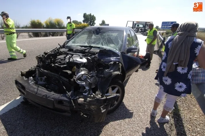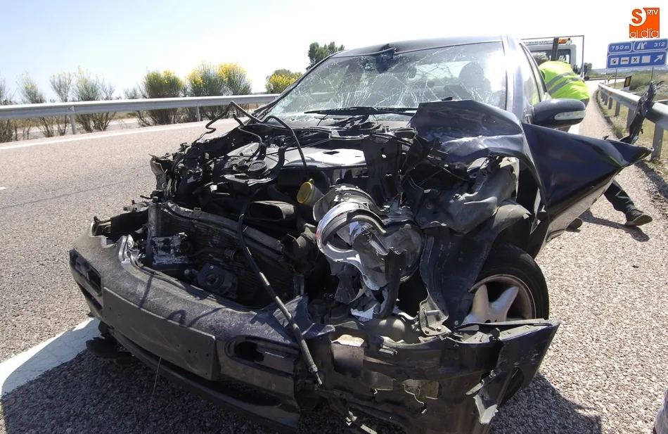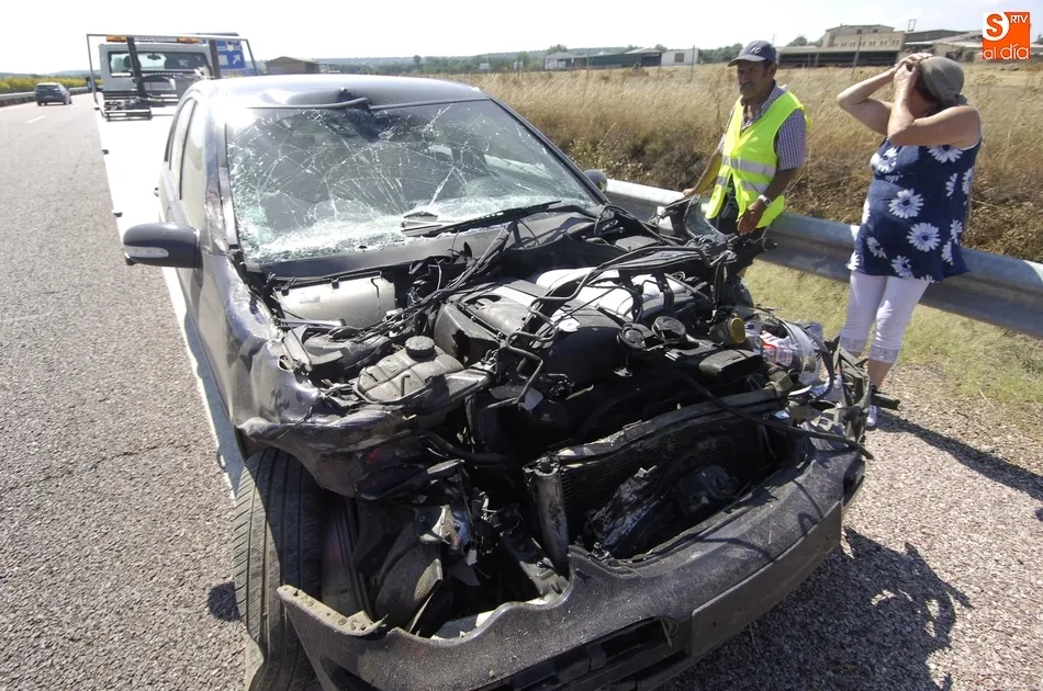 Un turismo de la marca Mercedes con matrícula francesa fue protagonista en la tarde del jueves de un accidente de tráfico en plena Autovía A-62, que milagrosamente se saldó sin heridos, aunque sí con notables daños materiales.