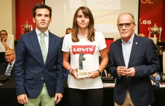 Carmen Álvarez Sánchez recibió su premio de manos del presidente de la Federación de Castilla y León de Fútbol, Marcelino S. Maté, y del director general de Deportes de la Junta de Castilla y León, Alfonso Lahuerta.