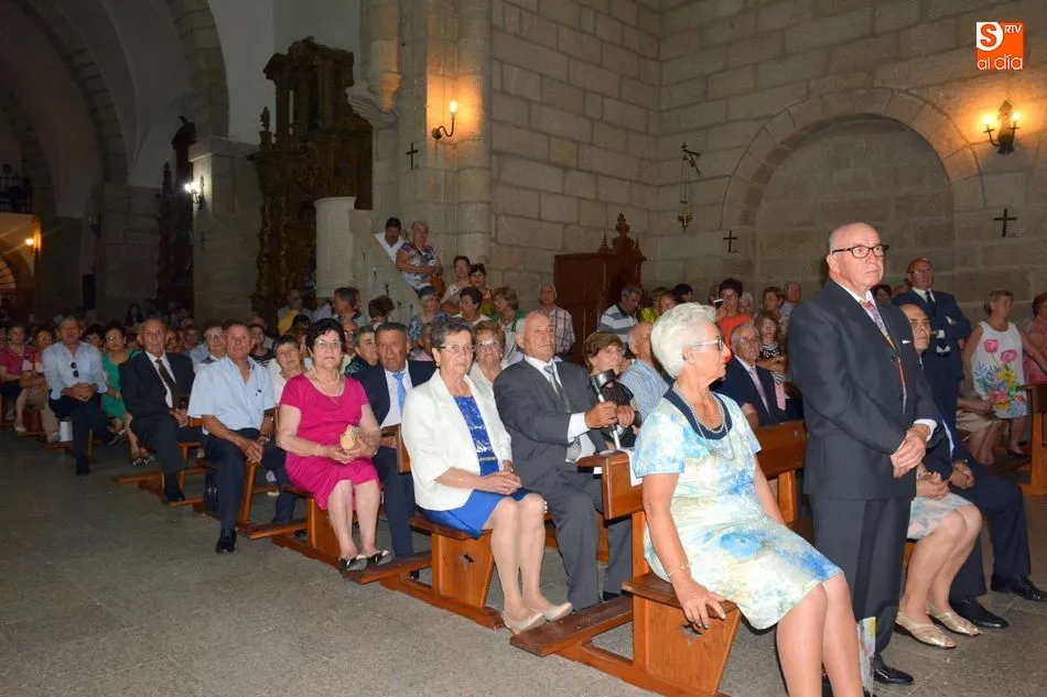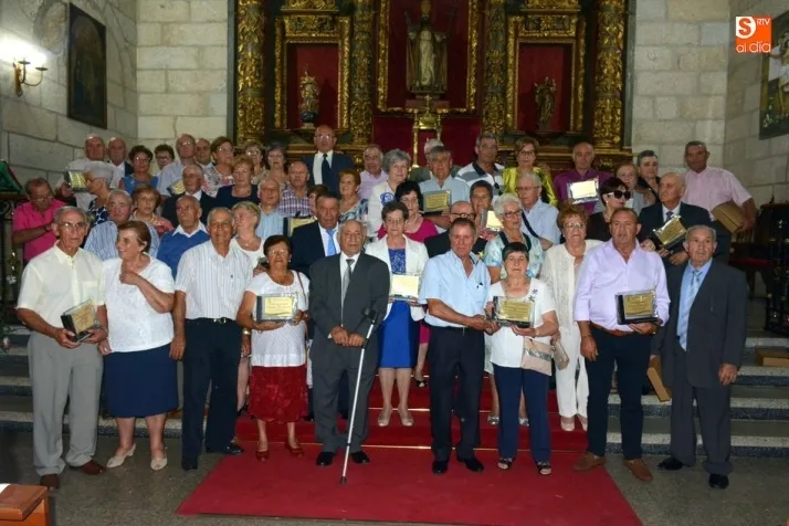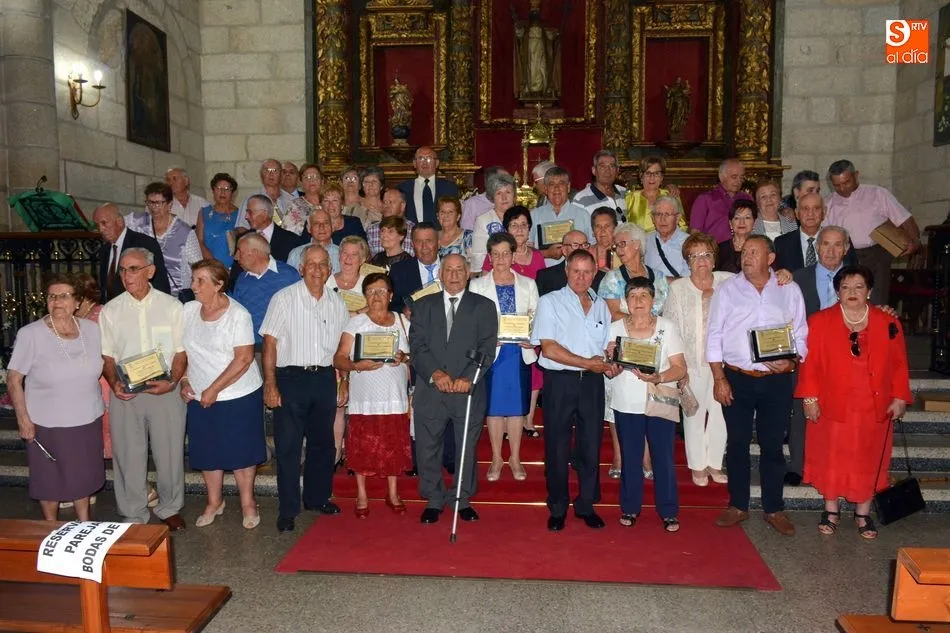 Treinta y cuatro matrimonios de Ahigal de los Aceiteros (3), Bañobárez (2), Barruecopardo, Bermellar, Cabeza de Caballo, Cabeza de Framontanos (3), Cerralbo (5), Hinojosa de Duero, Lumbrales (7), Mieza, Olmedo de Camaces (2), Saldeana, Sobradillo (2), La Vídola, Villar de Peralonso, Yecla de Yeltes y Zarza de Pumareda han recibido una placa conmemorativa y la felicitación de sus compañeros y de las autoridades asistentes al encuentro.