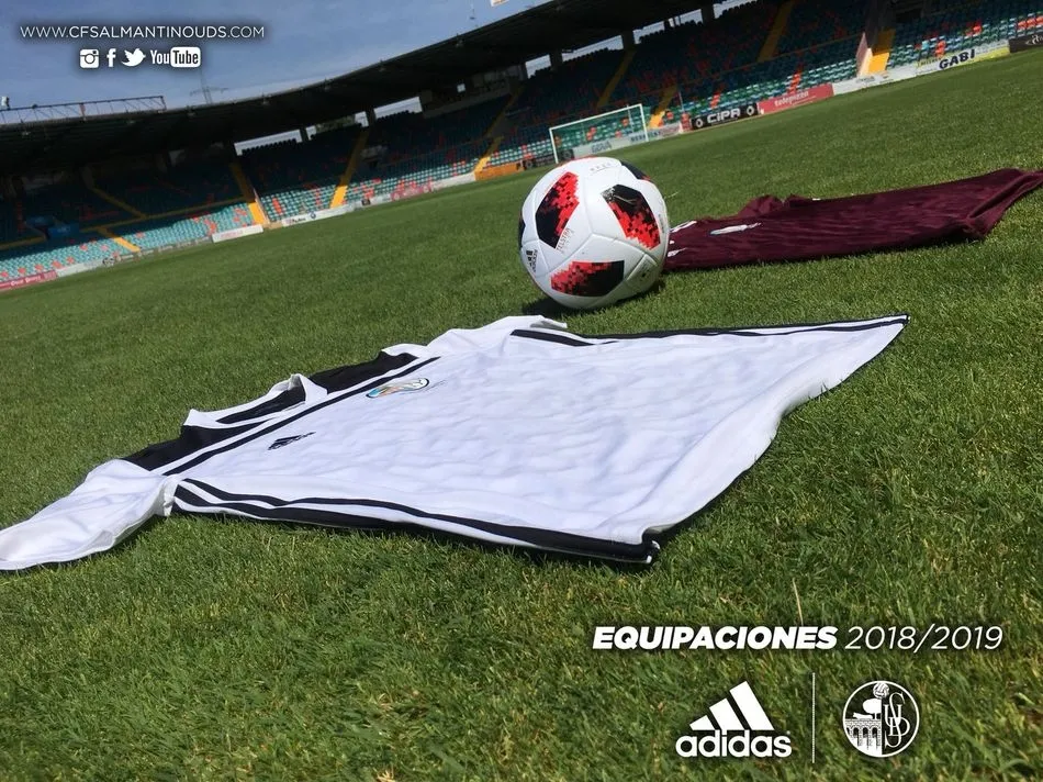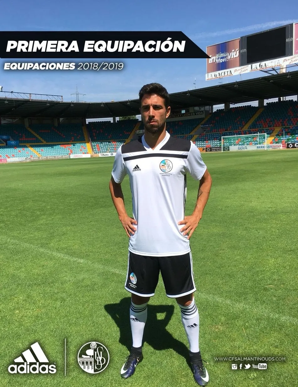 Camiseta blanca (con refuerzo negro en los hombros), pantalón negro y medias blancas. Así será la nueva equipación del Salamanca UDS para su retorno a Segunda División B. Un retorno donde los charros recuperan la marca Adidas y el escudo de la Unión para el pecho. Además, está previsto que se personalicen los dorsales. La segunda equipación será color vino, con el mismo color de la ciudad de Salamanca, pantalón blanco y medias tambien de color vino. Sencilla pero muy agradable a la vista.
