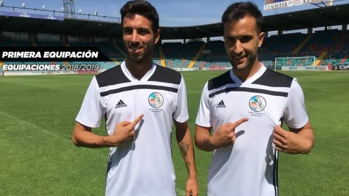 Fernando Pumar y Fran Morante han sido los ?modelos? elegidos para la ocasión y ambos lucieron ambas equipaciones en el estadio Helmántino donde en poco más de un mes ya las lucirán en partido oficial.