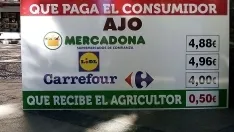 Ajos por los que el productor recibe 50 céntimos por kilo que se venden en las grandes superficies a cuatro o cinco euros; calabacines pagados a cinco céntimos vendidos después en las fruterías a un euro? así una larga lista de productos -patatas, berenjenas, zanahorias, pimientos o tomates- en los que se reflejan las enormes diferencias de precios que reciben los que producen y lo que pagan los consumidores en el destino final.