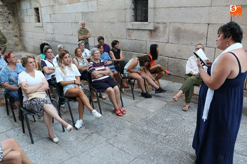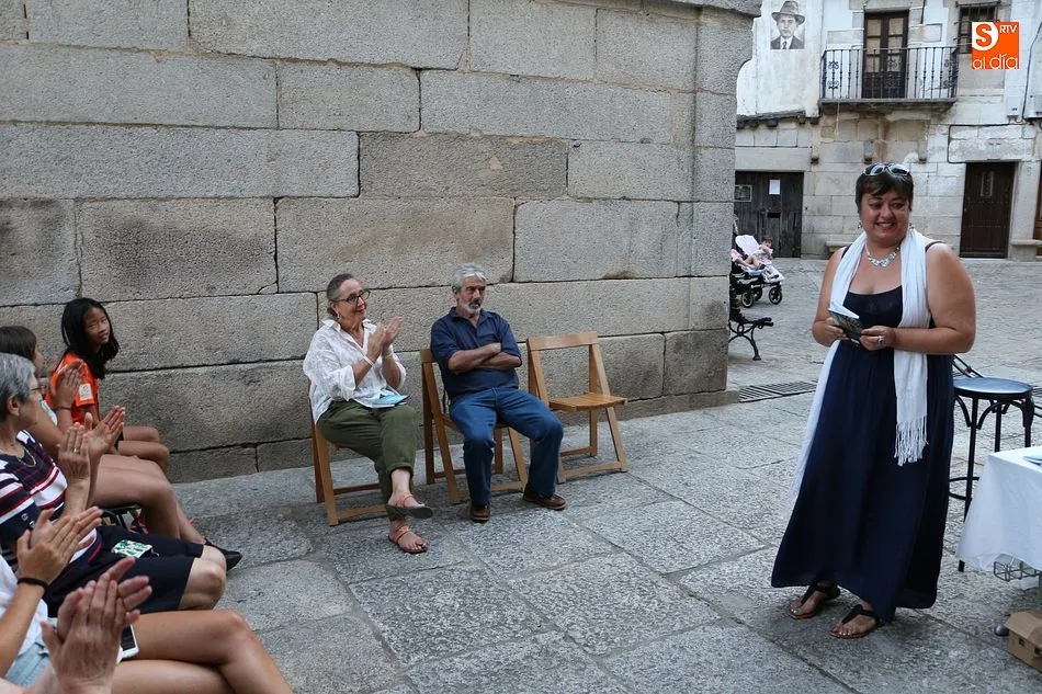 El Ayuntamiento de la localidad organizó el solano con sillas para el público, y la autora detalló el proceso de creación de su poesía y recitó ante los presentes algunos de los poemas. Muchos de ellos están inspirados en la Sierra de Francia, como uno inspirado a la leyenda del rey godo Don Rodrigo, u otro dedicado a las bordadoras serranas.