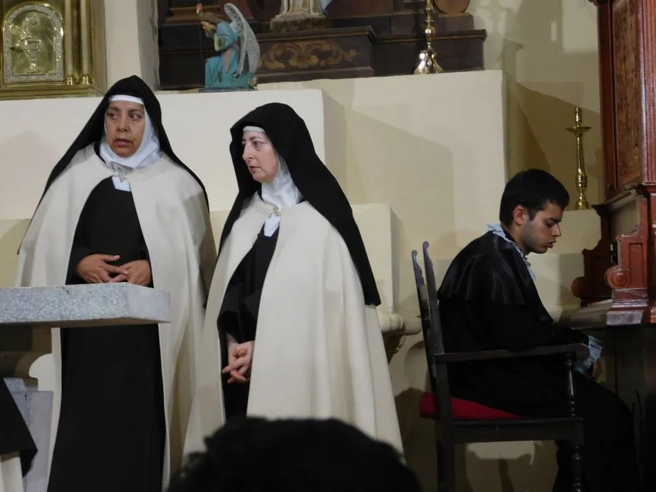 San Pedro Ad Vincula es el patrón de Tardáguila y el que da nombre a su iglesia parroquial, reconstruida con los restos de su factura original. Allí ?Teresa, la jardinera de la luz? despliega también todos sus medios para pasearnos por un tiempo y una historia que no dejan a nadie indiferente. Un púlpito ante el altar, escenario propicio para lo que se va a desarrollar, alberga a un padre dominico. Un grupo de hermanas carmelitas entran por la puerta de lo que de repente se convierte en la iglesia del convento de Alba de Tormes. Están cansadas del viaje, pero cantan con emoción un Kyrie Eleyson al compás de las notas que un maestro organista arranca de su maravilloso órgano. Estamos en el siglo XVI. Empieza un enconado diálogo, que nos va conduciendo por años de la existencia de una monja, mujer lúcida, de libre inteligencia, pero encadenada como el san Pedro que la observa desde el altar mayor a un amor más fuerte que su vida, el del Hijo de su Dios.