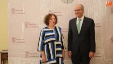 El presidente de la Diputación de Salamanca, Javier Iglesias, ha recibido esta mañana en la sede de la institución provincial a la nueva subdelegada del Gobierno en Salamanca, Encarnación Pérez, a quien ha transmitido su enhorabuena por el nombramiento y su deseo de una buena etapa profesional al frente de la representación del Gobierno de España en la provincia.