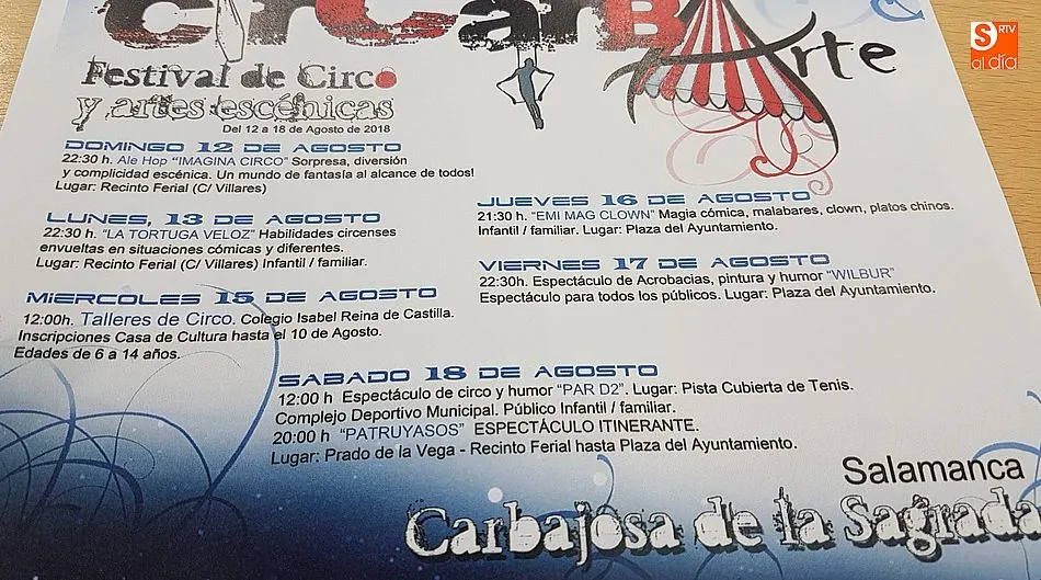 ?CirCarbarte? incluye el 15 de agosto talleres de circo, impartidos por Javier Figueiredo, para niños de seis a 14 años, con inscripción previa en la Casa de Cultura