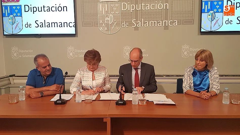 El presidente de la Diputación, Javier Iglesias, y la presidenta de Asprodes Plena Inclusión, Inmaculada Lorenzo, han renovado el convenio de colaboración por el que la institución provincial aporta 108.834 euros a la asociación, destinados, casi 50.000 euros, al centro ocupacional de Tamames y, el resto, para garantizar el transporte a los usuarios de las zonas rurales.