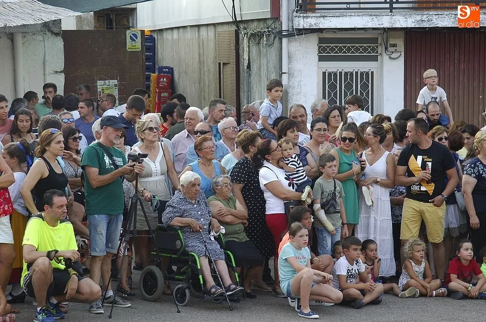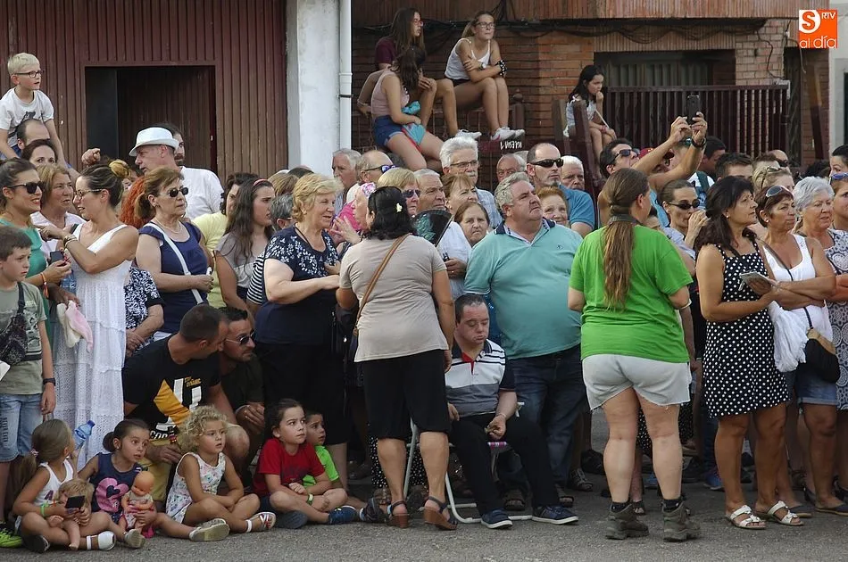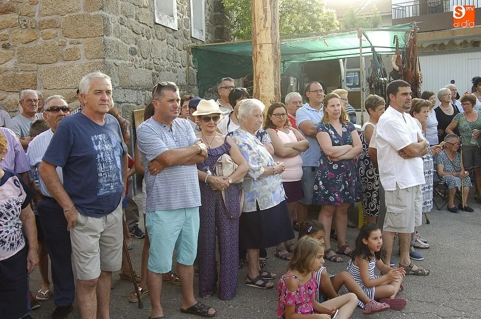 Una vez en la Plaza, el acto se inició con unas palabras por parte del alcalde de El Payo, Agapito Pascual, quién deseó que las rencillas que haya durante el año ?se olviden? durante estos días de fiesta y que ?se divierta todo el mundo sin peleas ni riñas?. Tras esa intervención se fueron sucediendo las actuaciones, que requirieron de un gran esfuerzo por parte de todos los involucrados, ya que hacía mucho calor, con lo cual era más incómodo llevar los trajes que lucían.