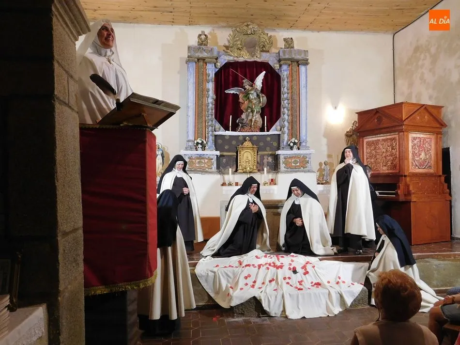 El Arcángel san Miguel, patrón de San Miguel de Robledo, impertérrito espectador del montaje teatral que invadió su iglesia, fue metáfora indiscutible de la fuerza y convicción de que la confianza en la luz de la verdad aplasta a cualquier demonio. La verdad de Arroyo Muerto guarda en su primigenio nombre la fuente de la que su población pudo vivir, y la naturaleza circundante y la confianza en ella como gran tesoro para todos los que la conocen les ha permitido cambiar su topónimo sin miedo a olvidar sus inicios. Para Teresa de Jesús ser monja no le impidió dar a conocer aquello en lo que creía firmemente, y no fue nada inconsistente cuando tanto revolucionó a toda su sociedad y ha seguido haciéndolo a lo largo de siglos. Conocer de primera mano una historia enmascarada en hábitos que de repente cobran vida real de mujeres reales, y ver caer el poder establecido para abrir puertas al futuro, hizo que el público de San Miguel de Robledo aplaudiera con su convicción de remorteños insignes, llenos de la vida de tantos siglos que por ellos han pasado.