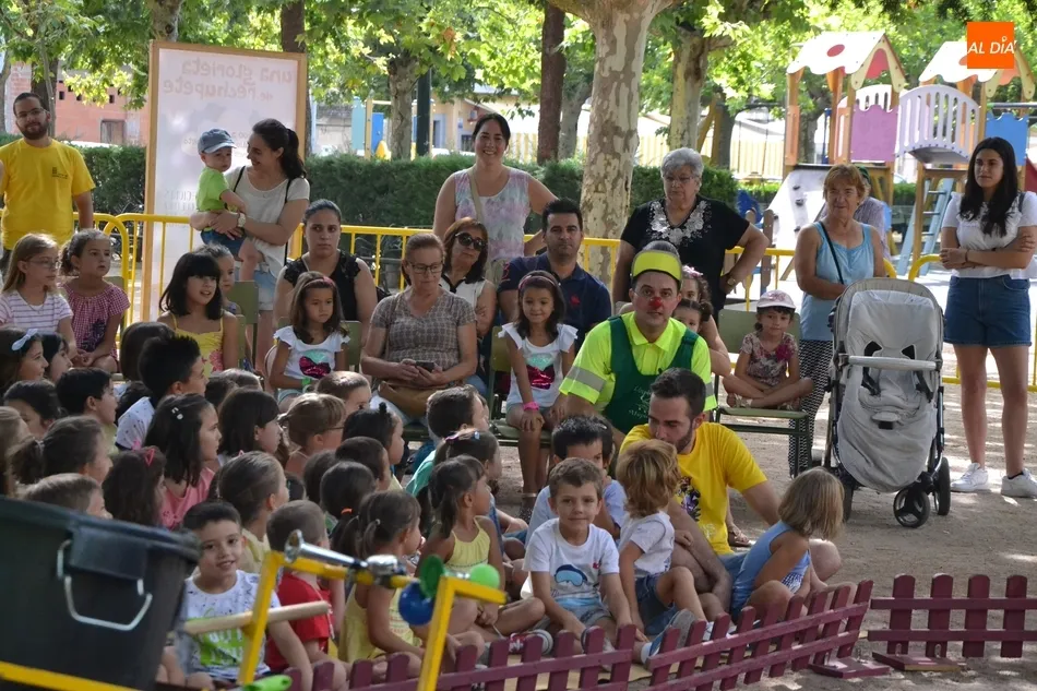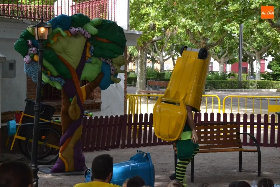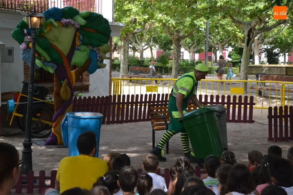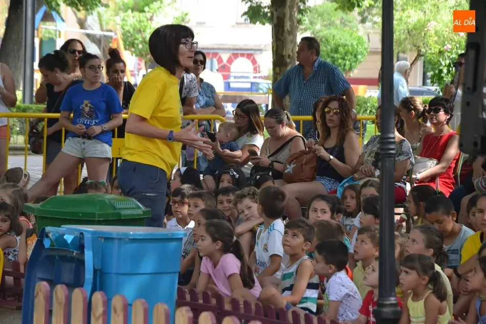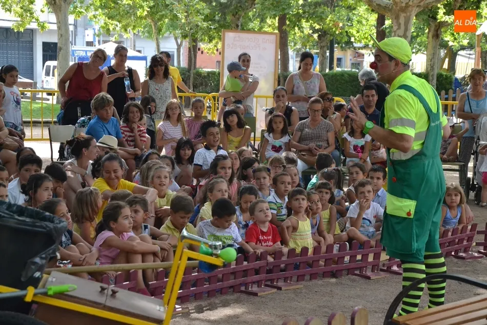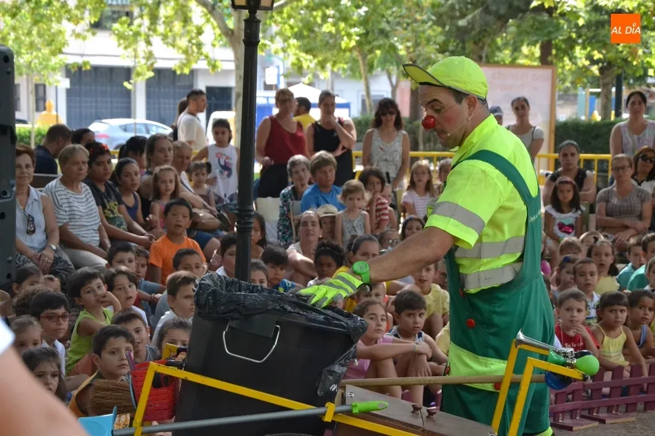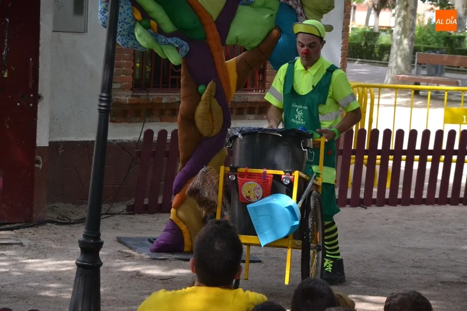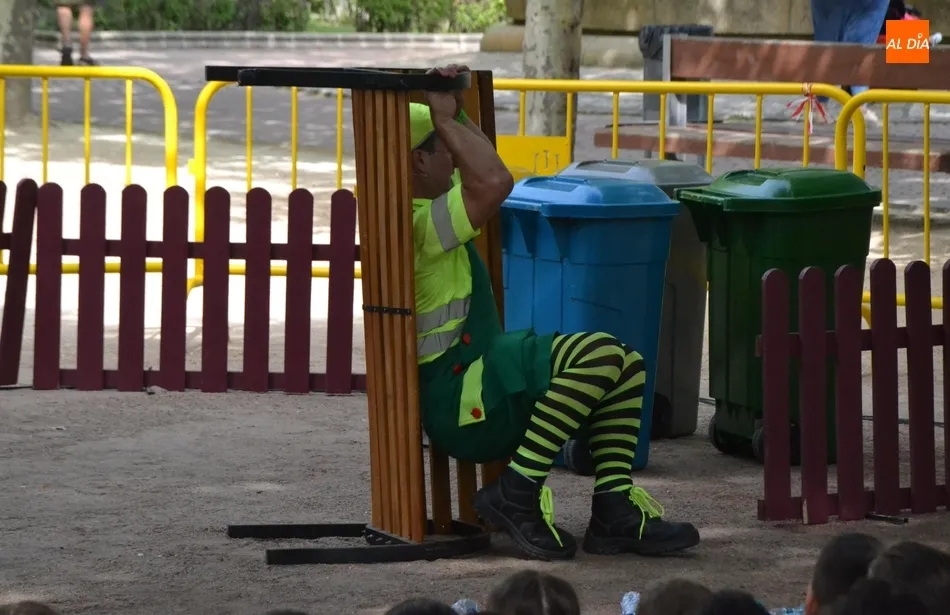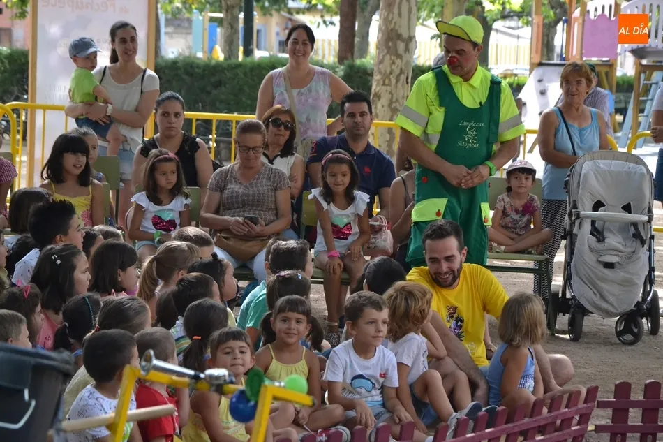 Las inmediaciones del templete del Parque de La Glorieta de Ciudad Rodrigo acogieron en la mañana del viernes la tercera cita teatral del programa Una Glorieta de Rechupete. En esta ocasión, La Glorieta recibió a Claudio Cleaner Clown, un simpático payaso de la compañía Teatro Atópico que quiso concienciar a los niños sobre la importancia del reciclaje.