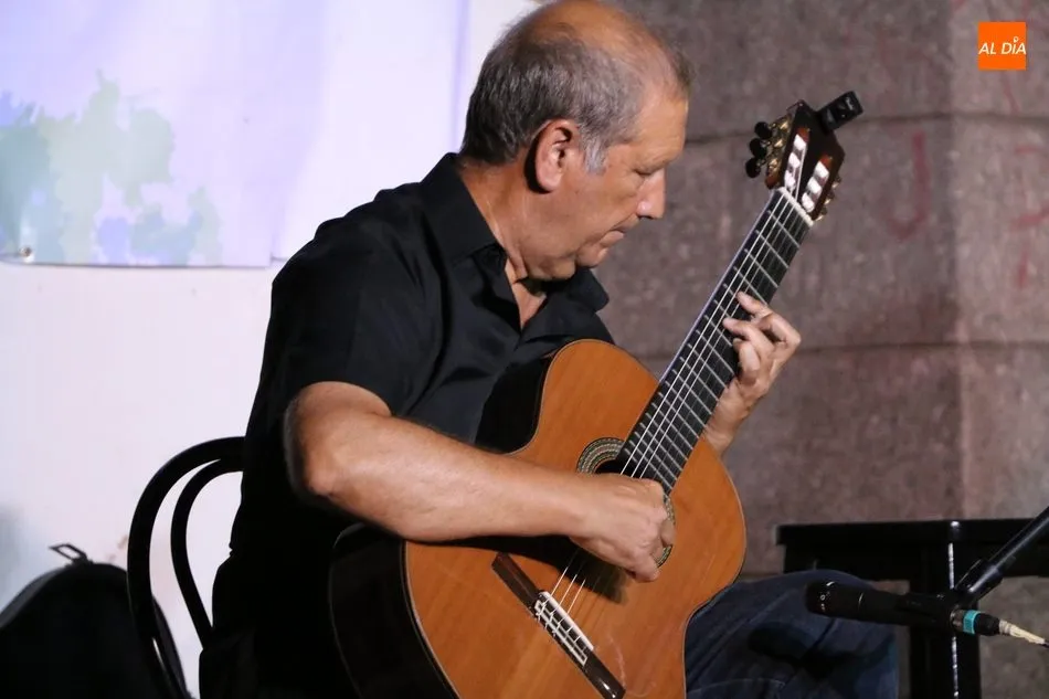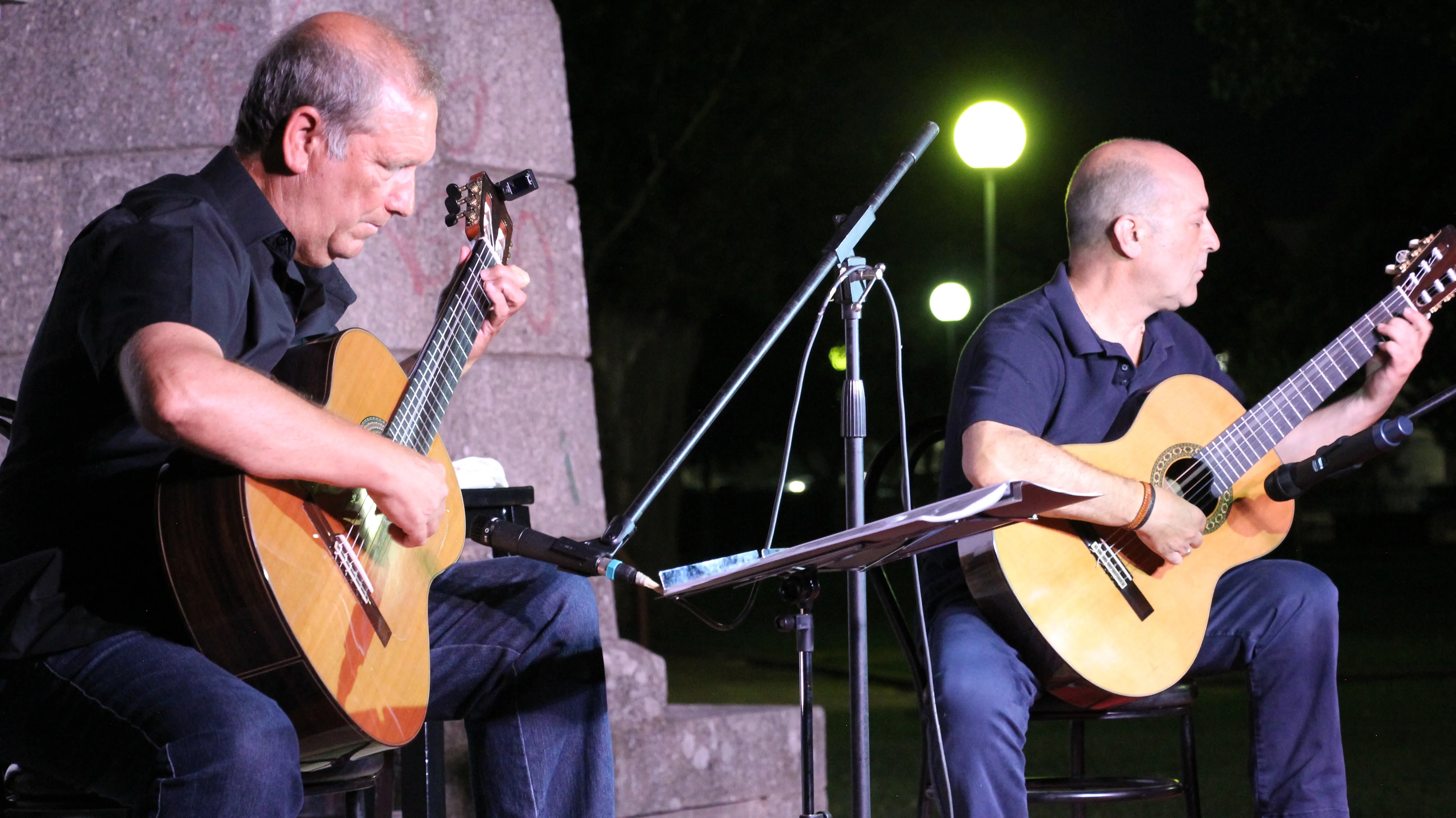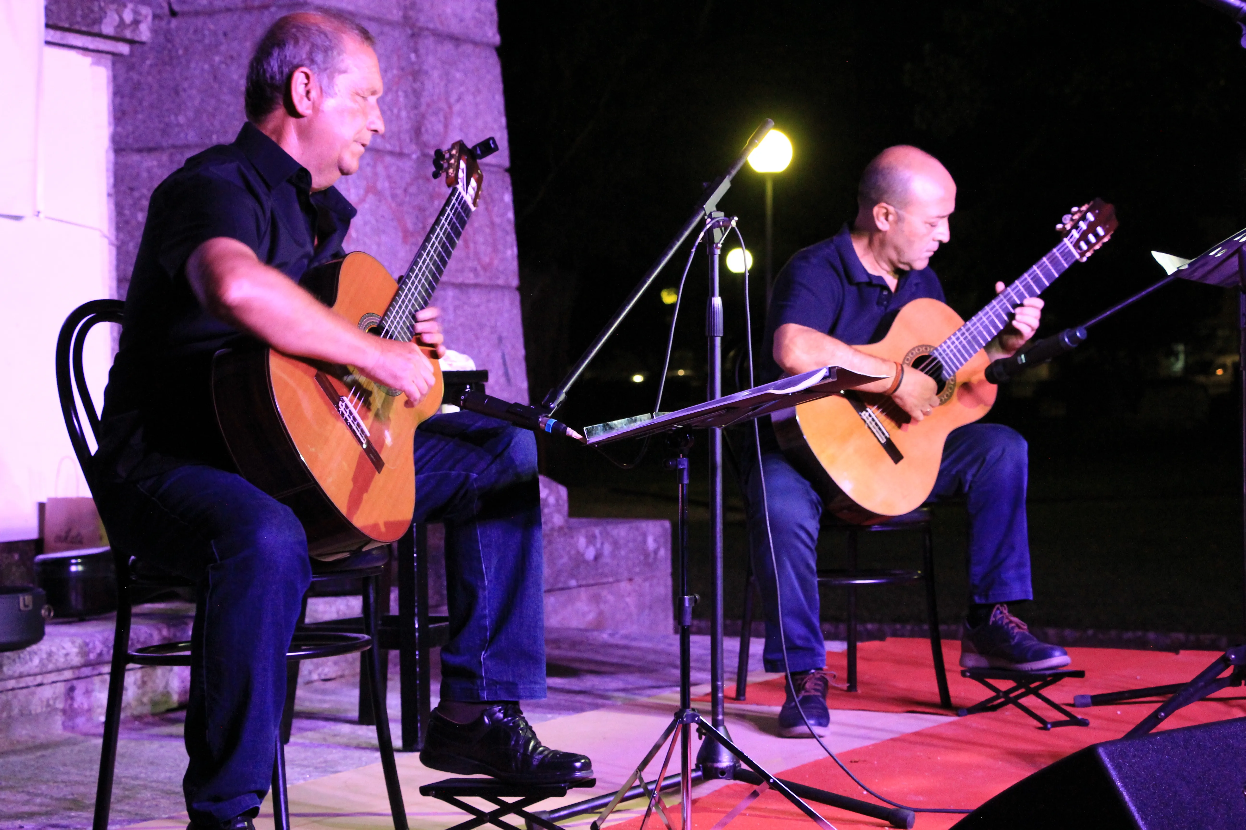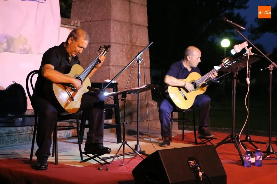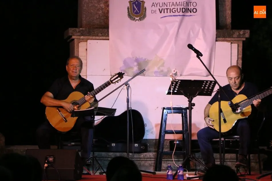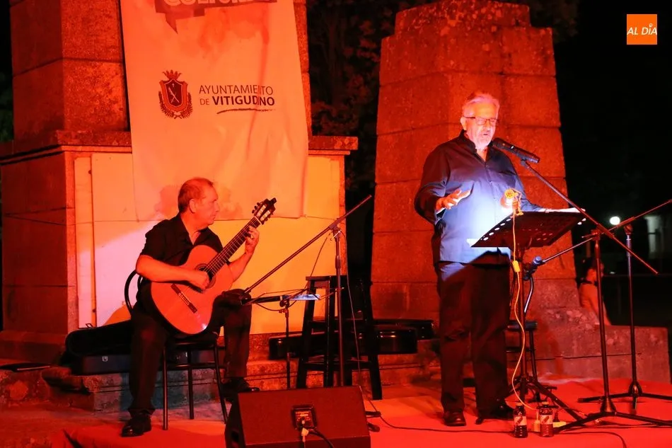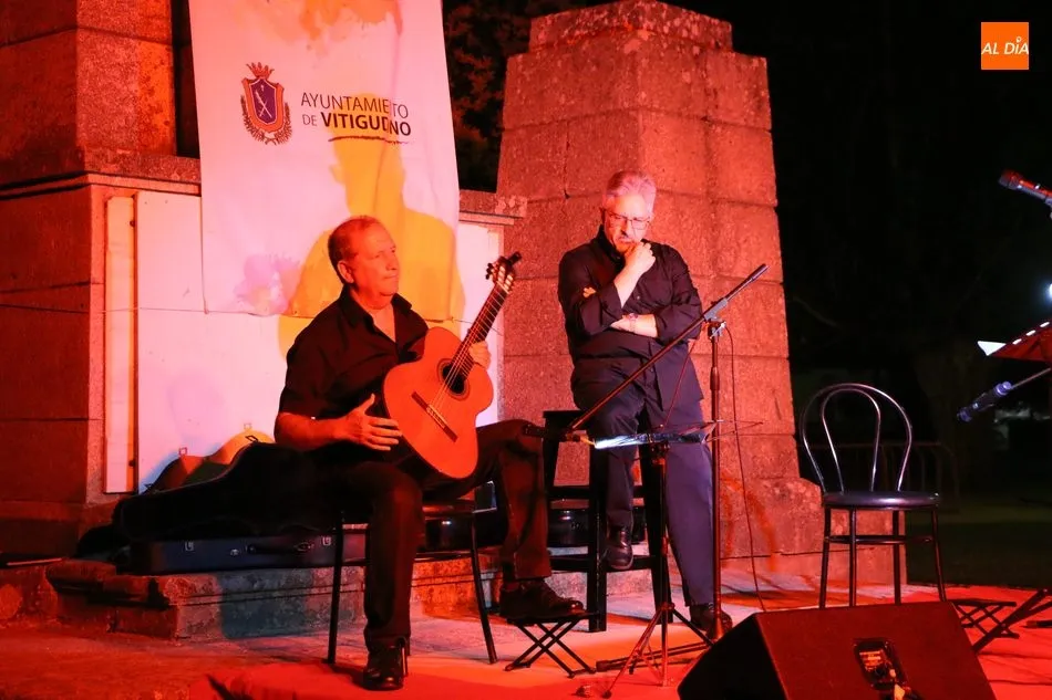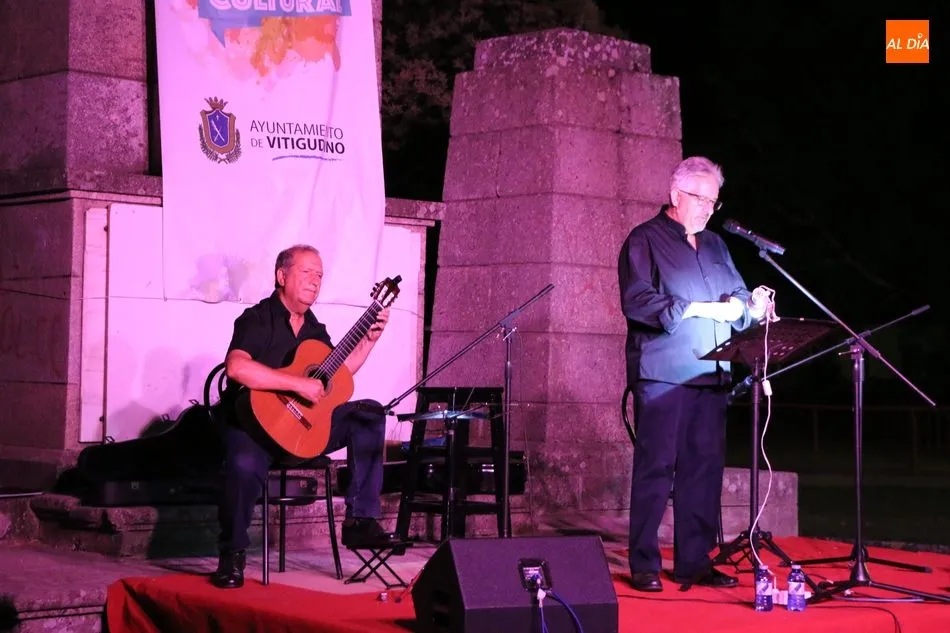 Afortunados fueron los que asistieron este viernes en Vitigudino al recital de versos y guitarra a cargo de Toño Blázquez y el Dúo Trastes formado por los guitarristas Luis Fiz y Beni Frutos. La actuación tuvo lugar en el parque San Nicolás y se enmarca en el programa cultural promovido por el Ayuntamiento con motivo de la celebración de las Ferias y Fiestas en honor a la Virgen del Socorro.