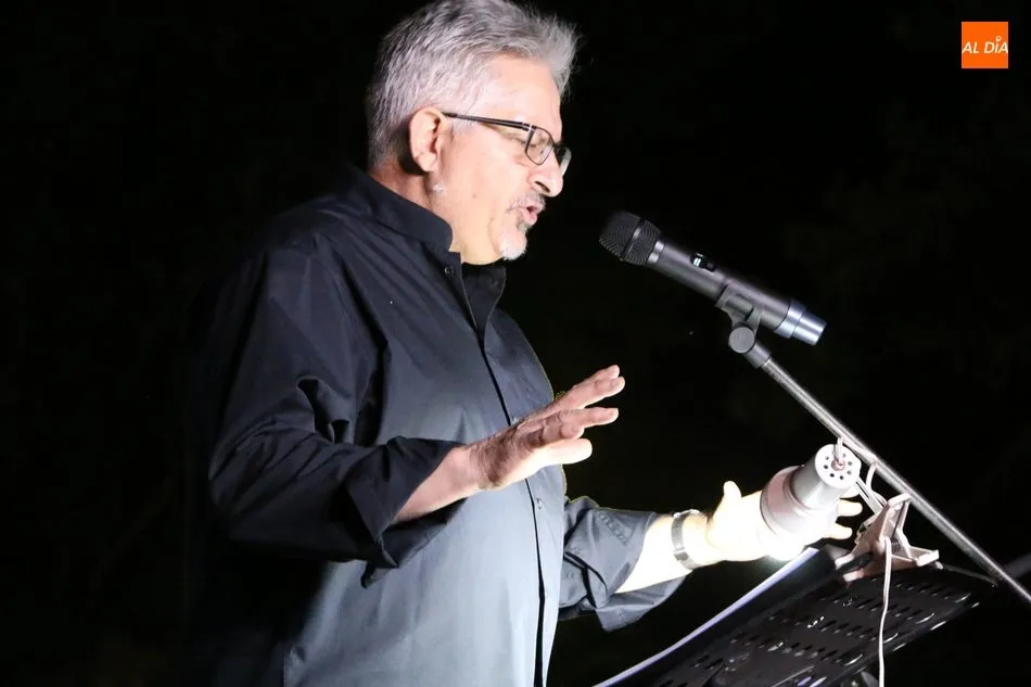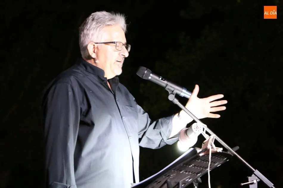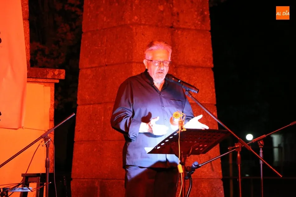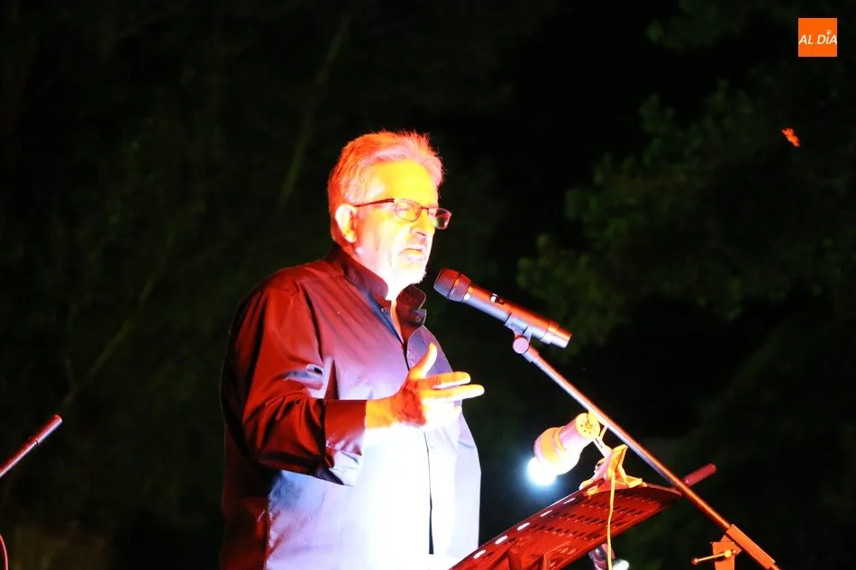 Finalizada la primera parte de la actuación, Toño Blázquez recitaba de manera magistral, como es costumbre, versos de los más famosos poetas, Lorca, Neruda, Machado, Gabriel y Galán o León Felipe y otros menos conocidos, y bajo los sutiles punteos de guitarra Luis Fiz para emocionar al público.