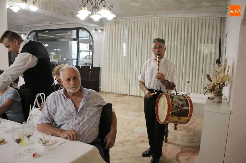 A los postres, Pablo y Adela, secretario y vocal de la asociación, hicieron entrega de sendas placas a los socios de mayor edad, concretamente a Ángel Herrero Herrero y a Josefa Sánchez Medina, de 86 y 84 años respectivamente. Tampoco faltaría la música de gaita y tamboril para animarse a echar un baile tras la comida.