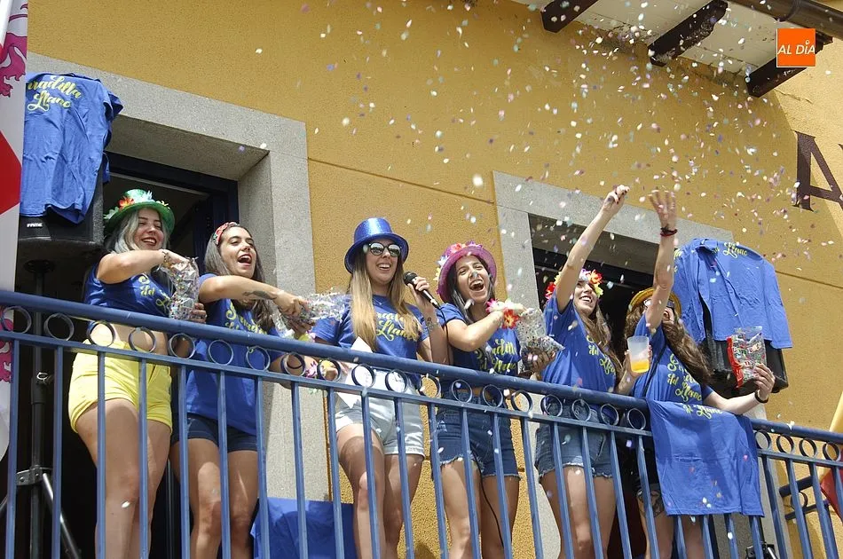 Precisamente, fueron ellos los encargados de lanzar el chupinazo, con una pequeña intervención desde la balconada del Ayuntamiento, el lanzamiento de confeti y descorchando espumoso con el cual se rociaron y brindaron, todo ello entre una gran algarabía y los aplausos del público congregado en la Plaza.