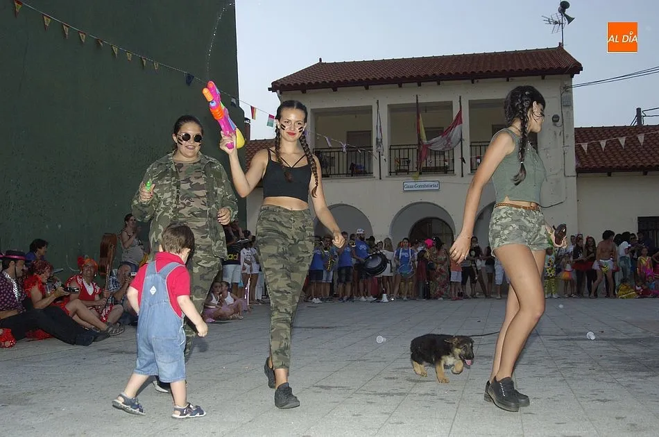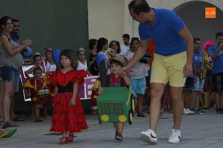 La gran particularidad del momento de arranque oficial de las fiestas es que numerosos vecinos, sobre todo niños y jóvenes, asistieron al mismo disfrazados, llegando en una animada comitiva hasta la plaza, donde desfilaron ordenadamente para que todos los congregados pudieran contemplarlos a la perfección.