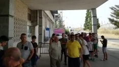 *Foto: Aspecto que presentaba la cola esta mañana, una hora antes de abrirse las oficinas.