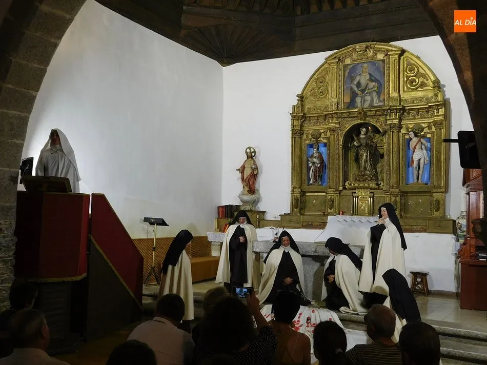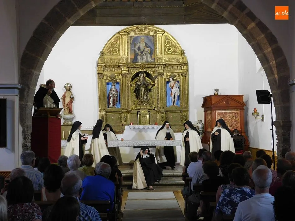 Una mujer franca se dirige sin miedo a todo un rey, para defender a quien considere oportuno. Amistad con su Majestad terrenal, Felipe II, y apasionado amor por su Majestad del Cielo a quien se declara con hermosísimas palabras que desbordaron su obra lírica. Pies cansados que recorrieron caminos buscando nuevas casas para sus hermanas. Y por encima de todo, una inteligencia natural que le permitió llegar a todos los estamentos de la sociedad llevando por bandera la libertad que en Dios encontraba. Bajo sus hábitos de paño de lana de oveja, las actrices de ?Lazarillo de Tormes? se convierten en unas hermanas carmelitas que son fiel reflejo de todo ello. Desmontan sin pudor con obvios argumentos y las palabras de su madre, todos los que el padre dominico enviado de la Inquisición, se empeña en lanzarles desde su púlpito. La música que acompaña a todo el montaje, y que proviene del órgano que, estamos casi seguros, toca el maestro Salinas, no deja de hacer guiños a todas las situaciones que desde el altar de la iglesia de Casafranca se hicieron de nuevo, pero que son siempre exclusivos. Este bien hacer lo aplaudieron unos vecinos que saben del valor de la hoguera como símbolo de vida tan necesario para los hombres, y que desde esta óptica la contemplan cada vez que en los fríos comienzos de diciembre, se juntan en la plaza de su pueblo para honrar con su luz y calor a su tan venerada santa Bárbara, otra mujer que tanto admiran, y que pasó por la tierra con la fuerza del rayo.