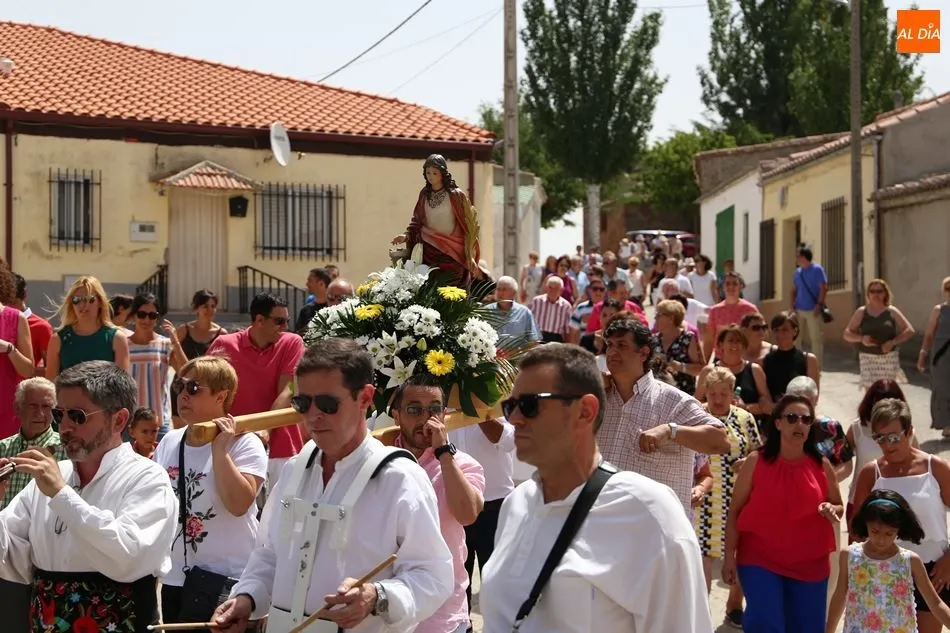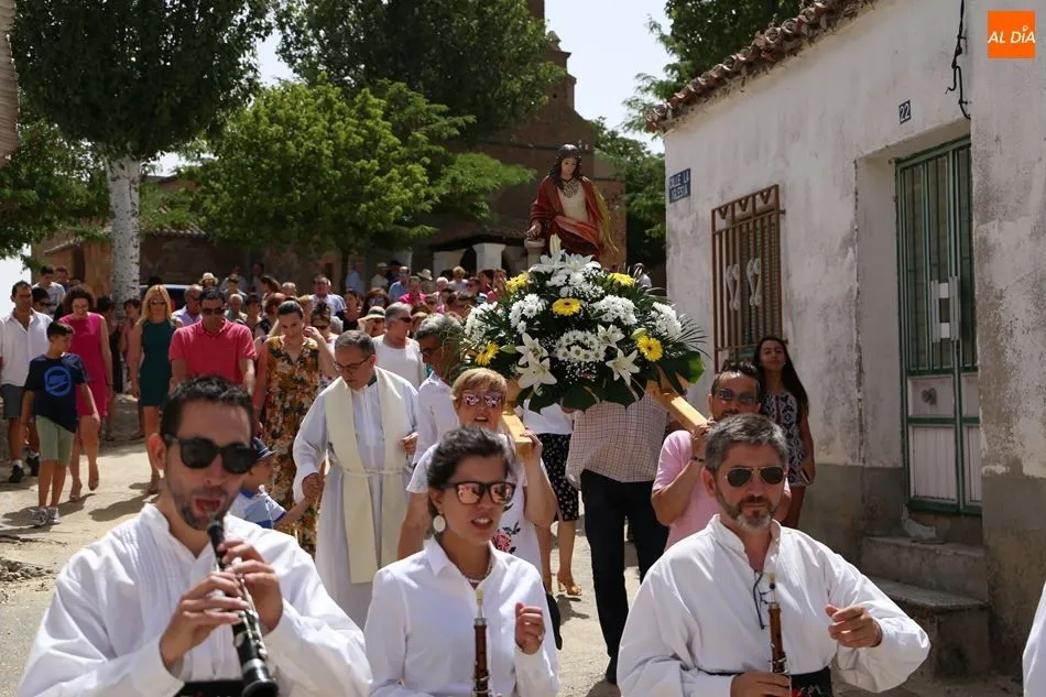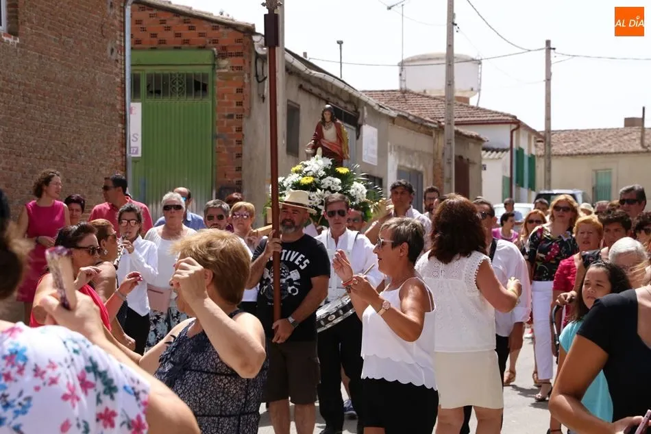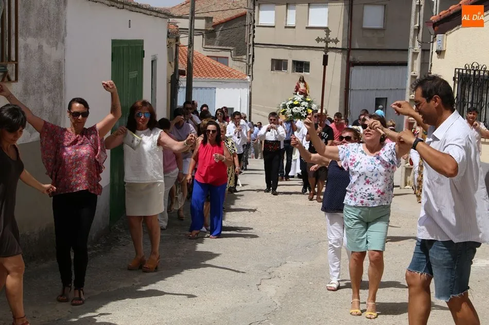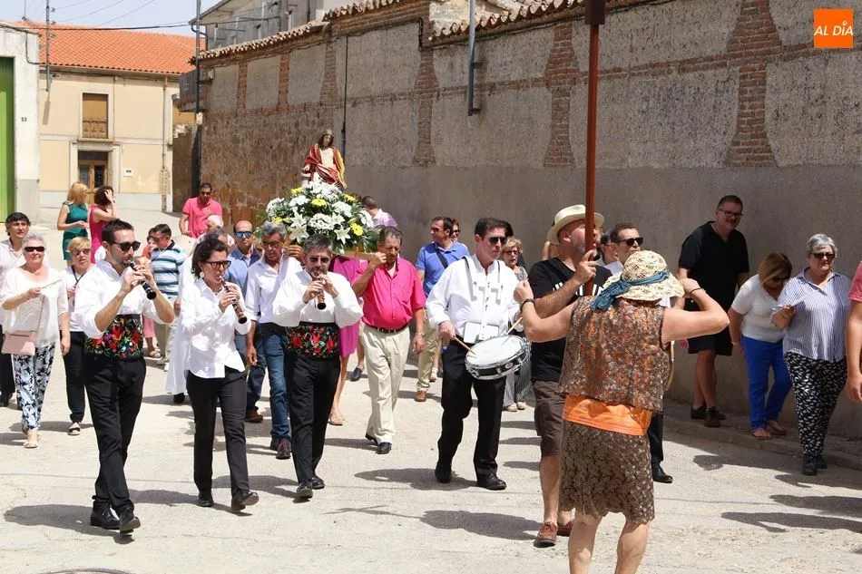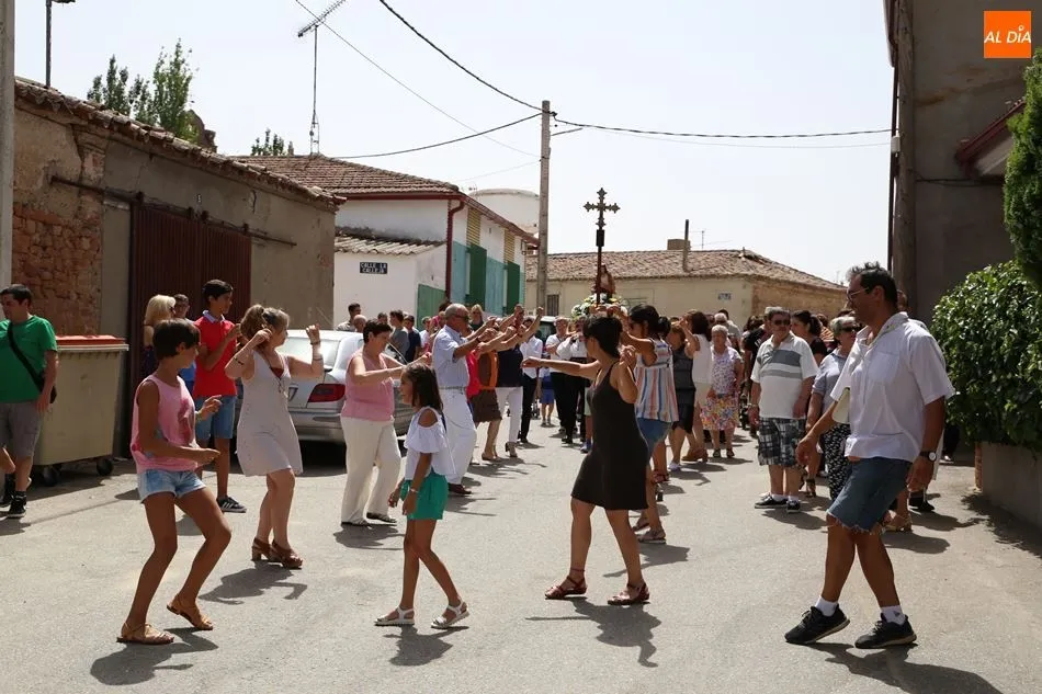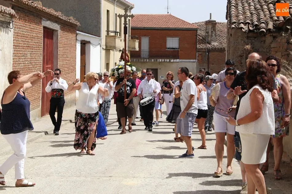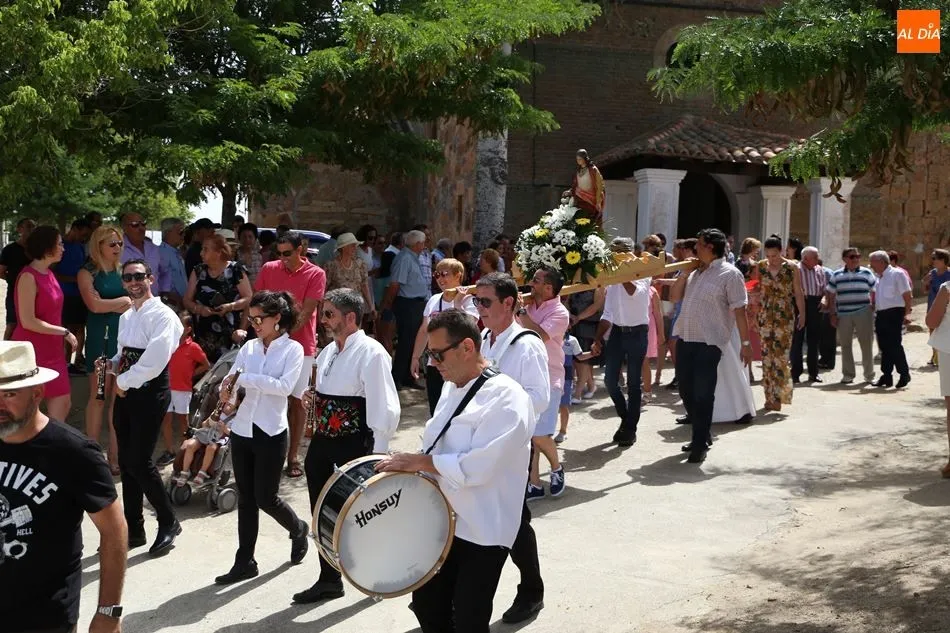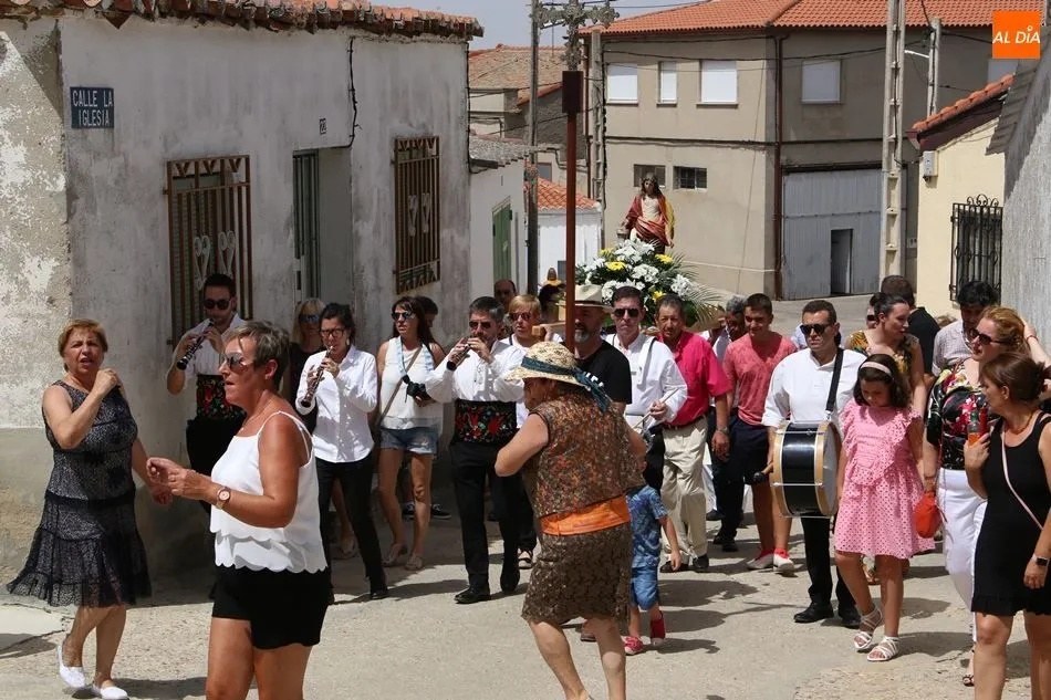 El grupo de dulzainas abría la comitiva, que recorrió las calles del pueblo. Al ritmo de las jotas tocadas por los músicos, los vecinos se animaron a bailar ante la imagen de la Virgen. Mientras tanto, varios vecinos se turnaban para portar el paso. A continuación, el Auuntamiento ofreció un vino de honor con múltiples viandas y bebidas.