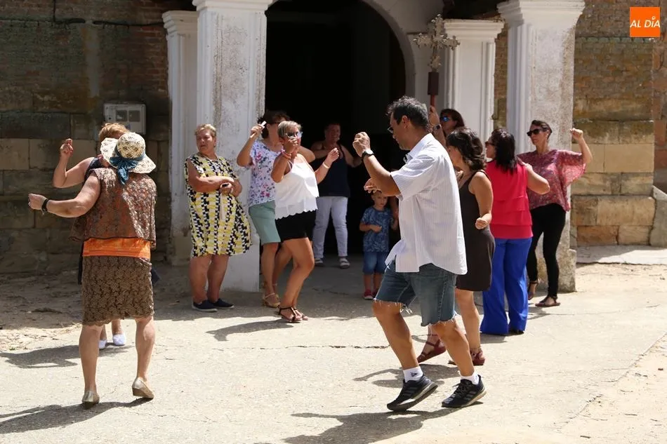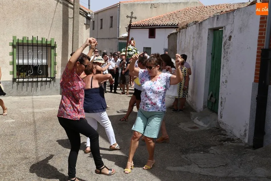 Los vecinos se sumaron a la procesión y bailaron las jotas acompañados por un intenso calor